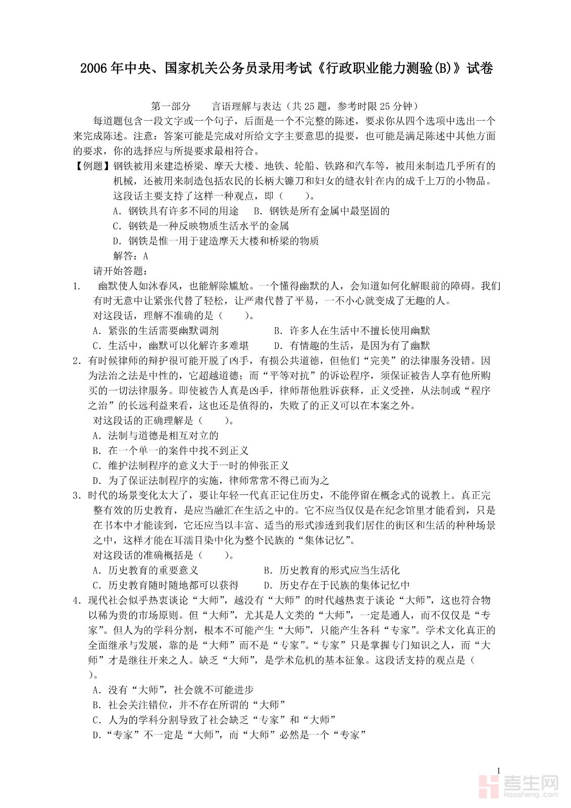 2013年国家录用公务员考试《申论》真题卷及答案(地市级)