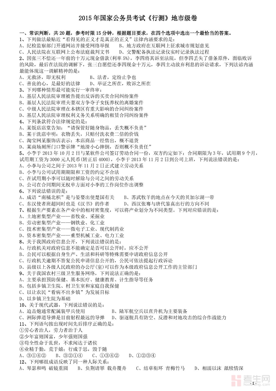 2024国考申论试题-地市级+副省级+行政执法(完整版+参考答案)