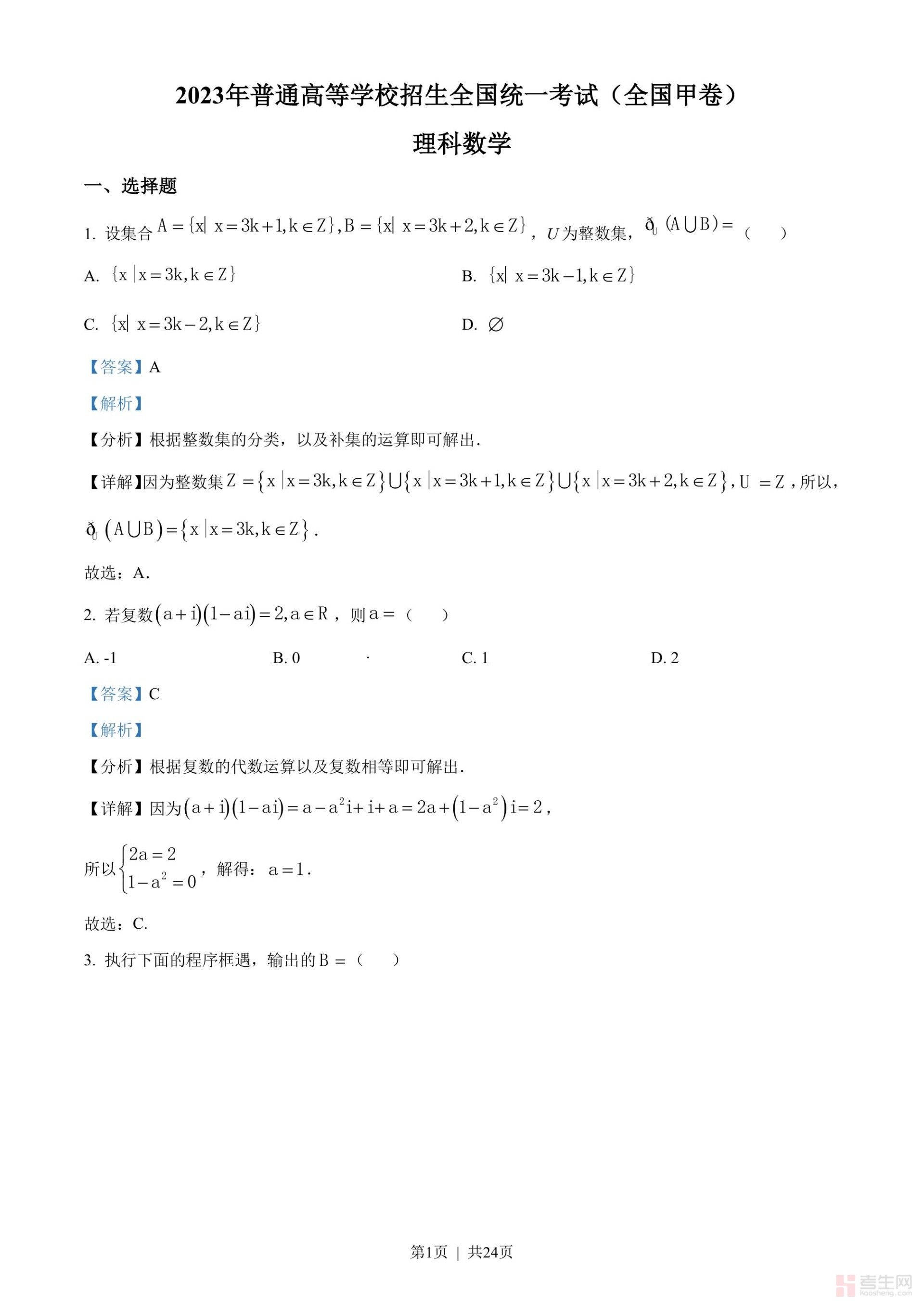 2023年高考数学试卷(理)(全国甲卷)(解析卷)