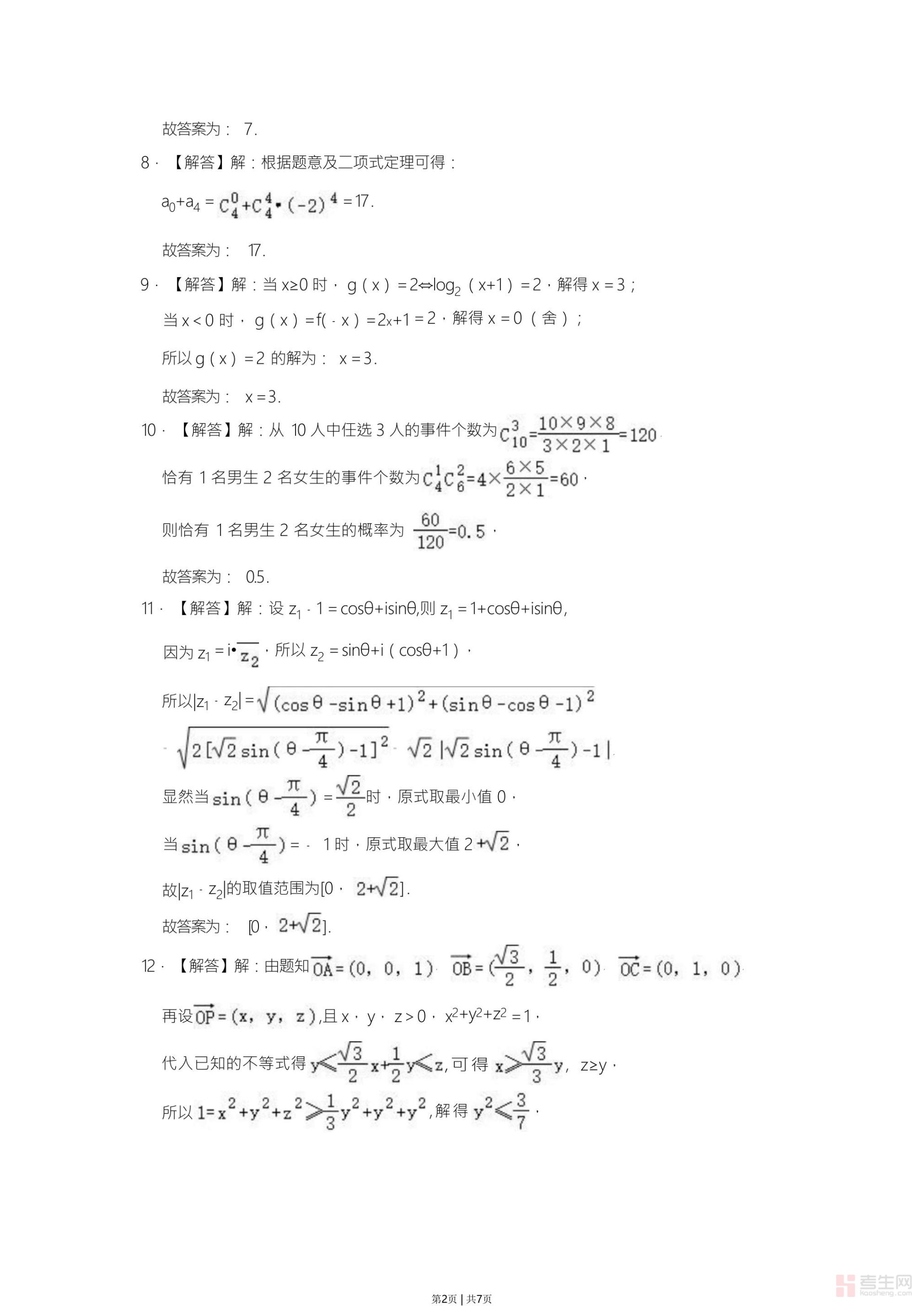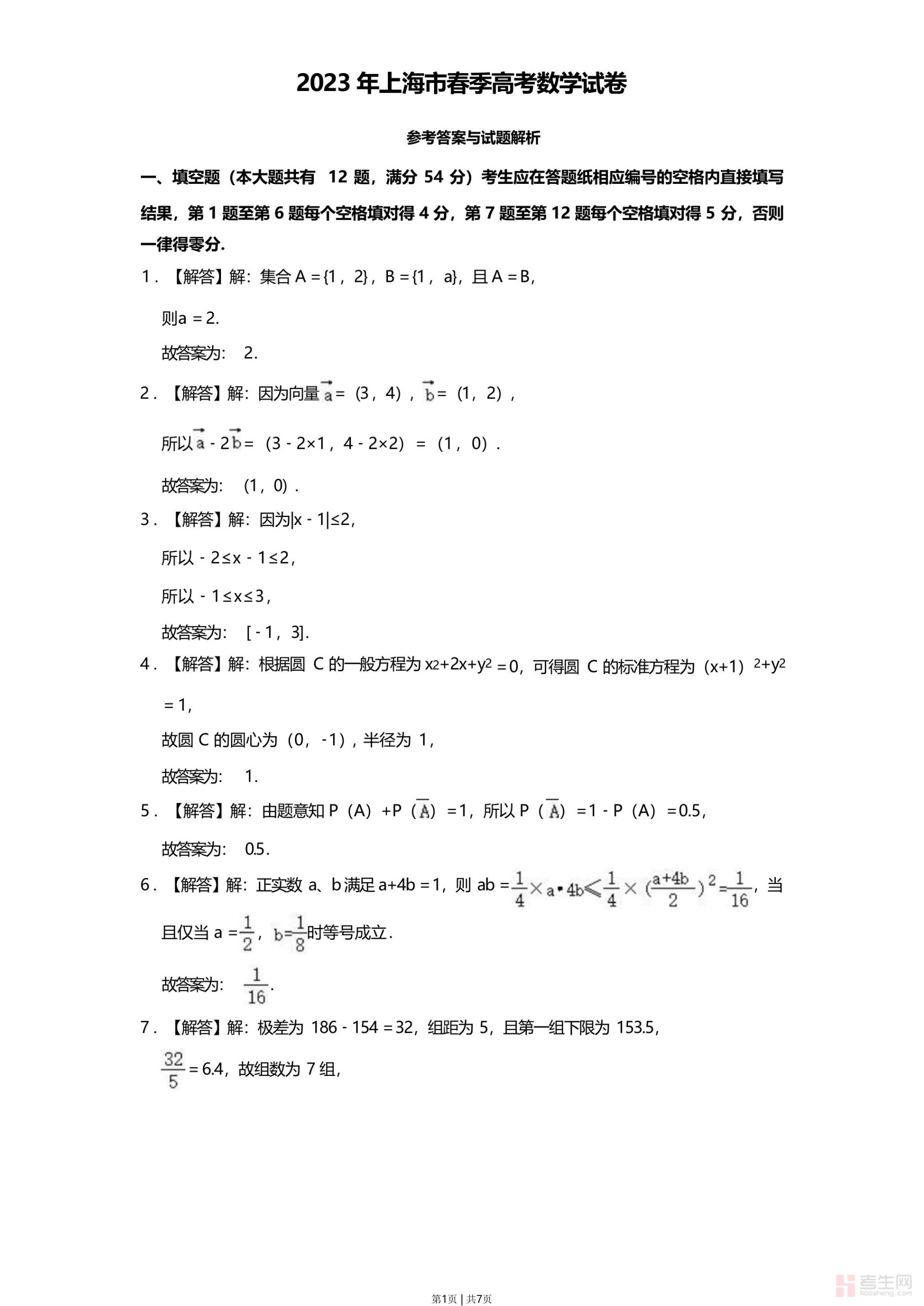 2023年高考数学试卷(上海)(春考)(解析卷)