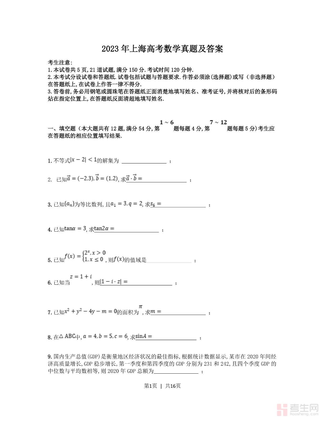 2023年高考数学试卷(上海)(秋考)(解析卷)