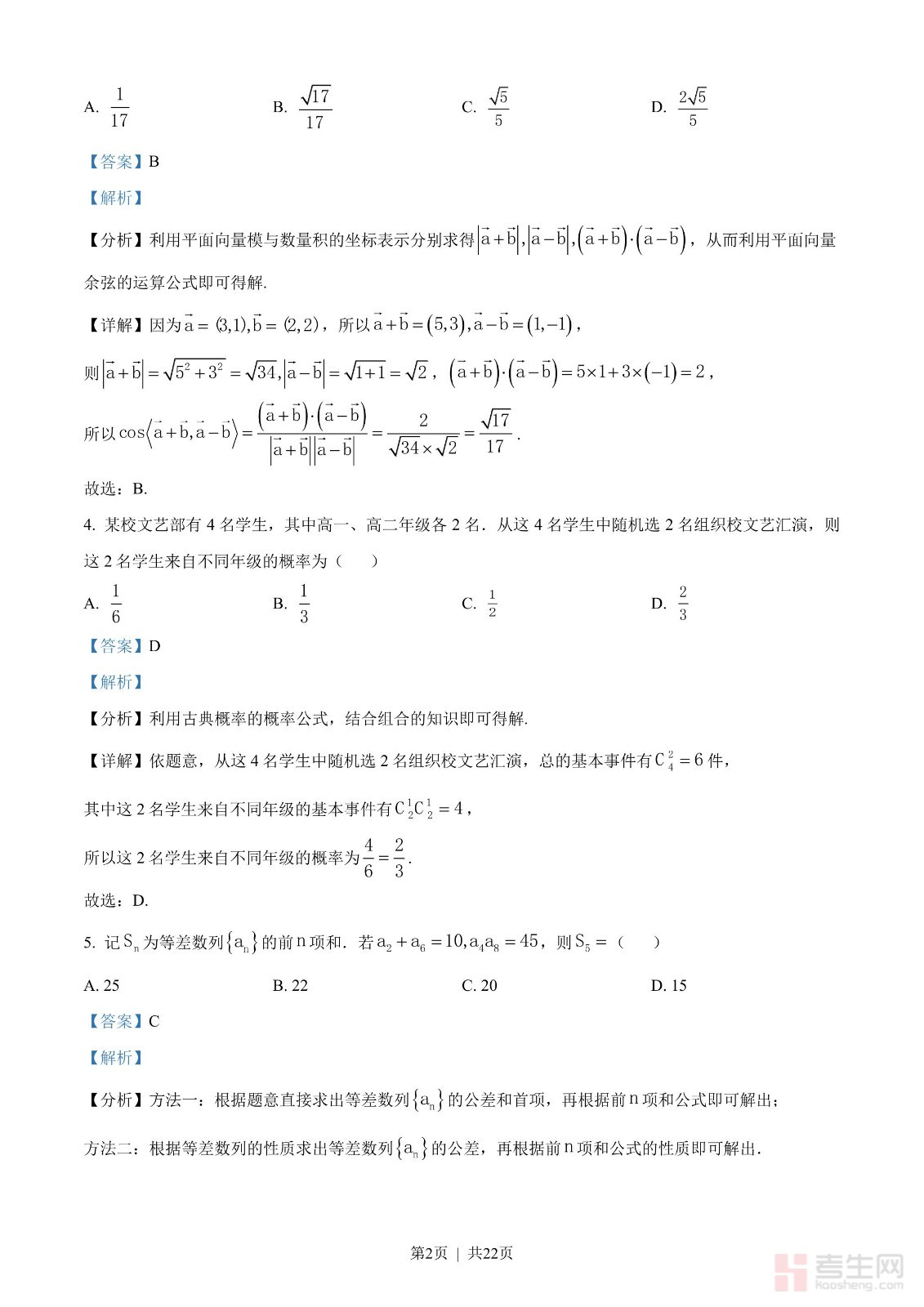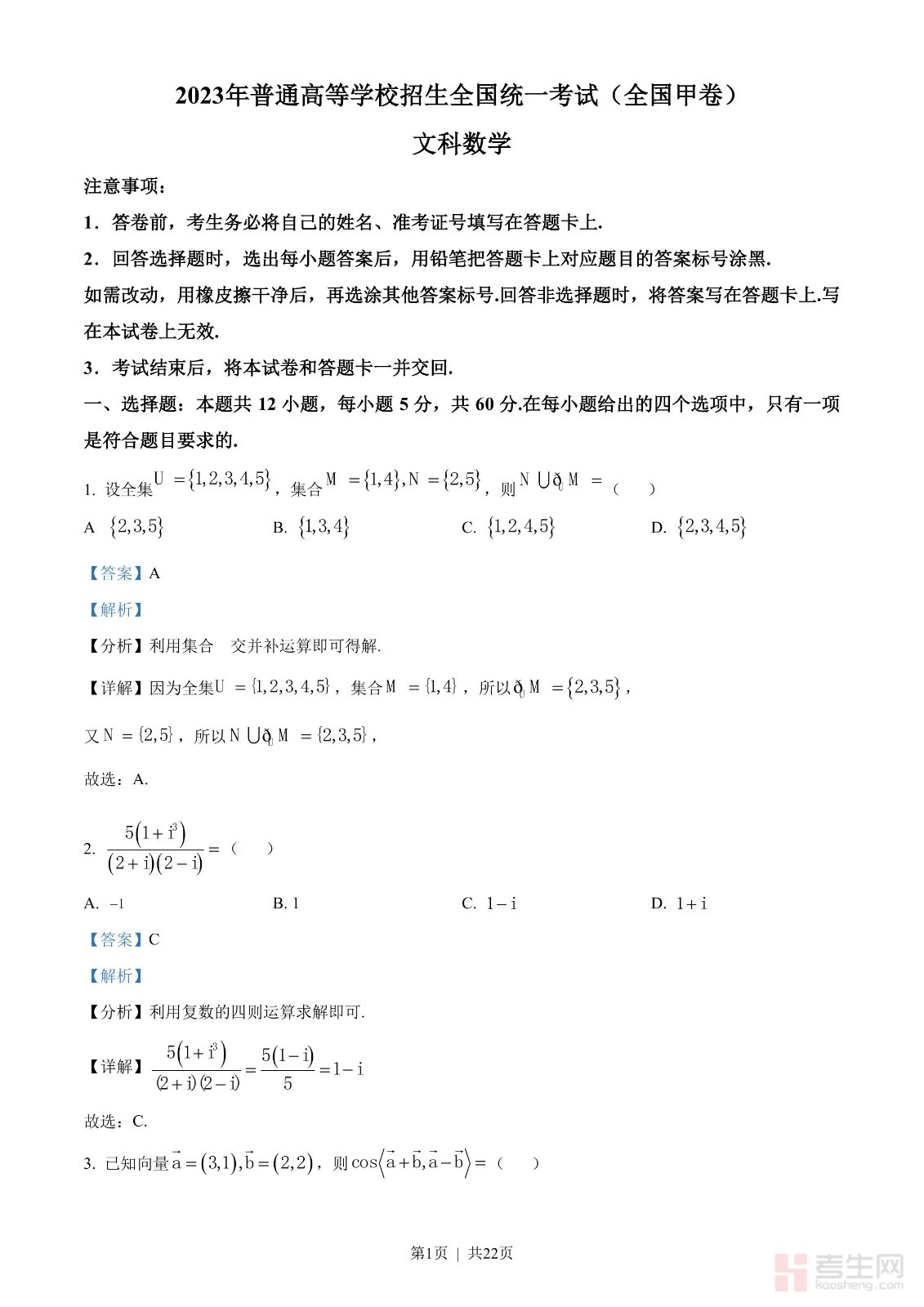 2023年高考数学试卷(文)(全国甲卷)(解析卷)