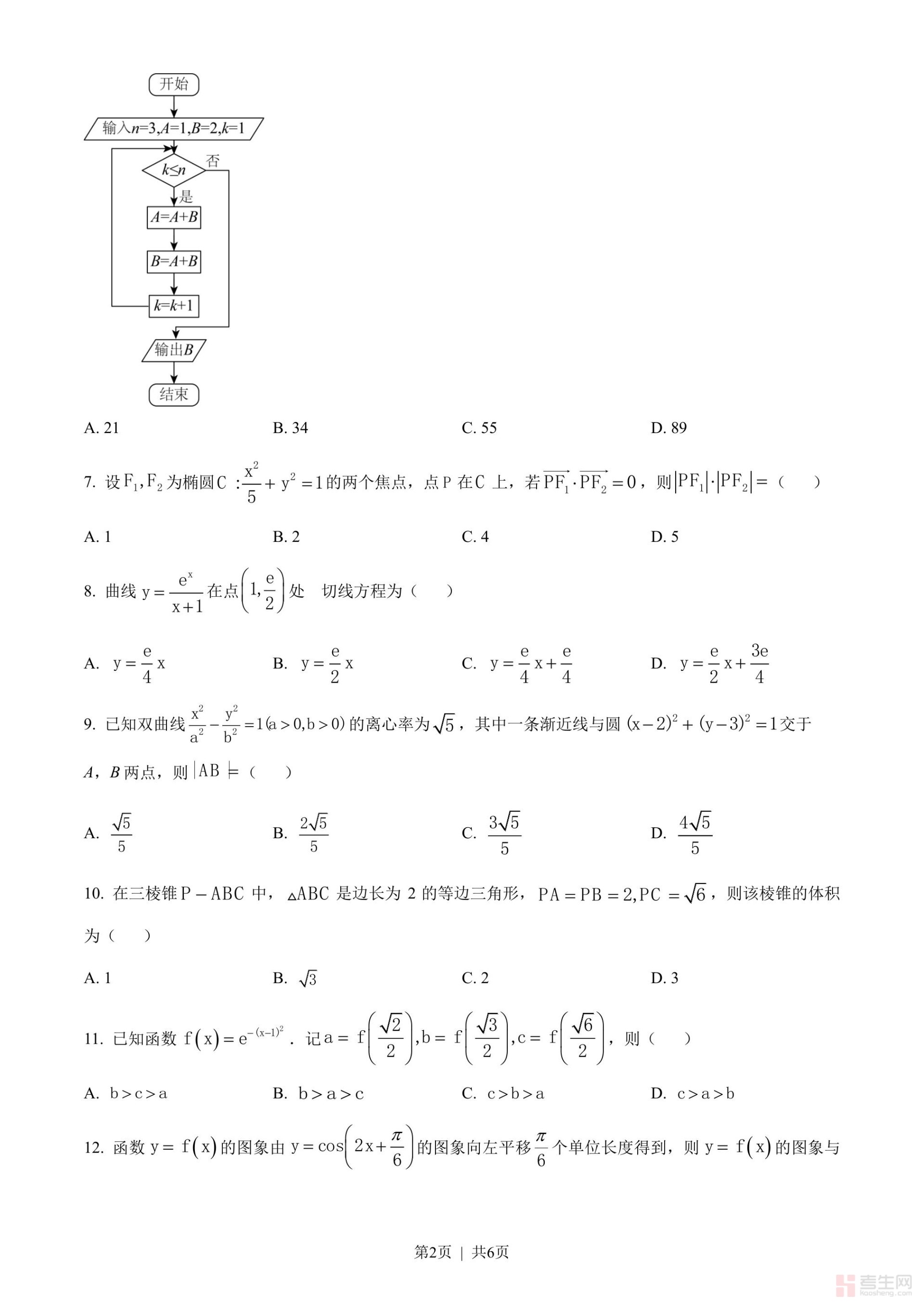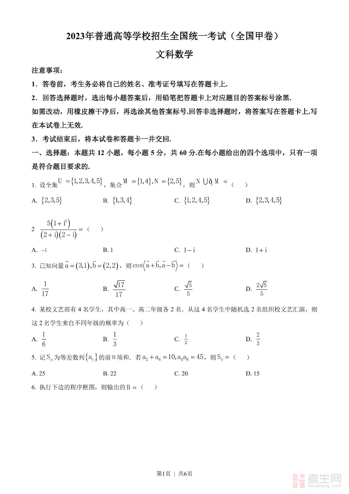 2023年高考数学试卷(文)(全国甲卷)(空白卷)