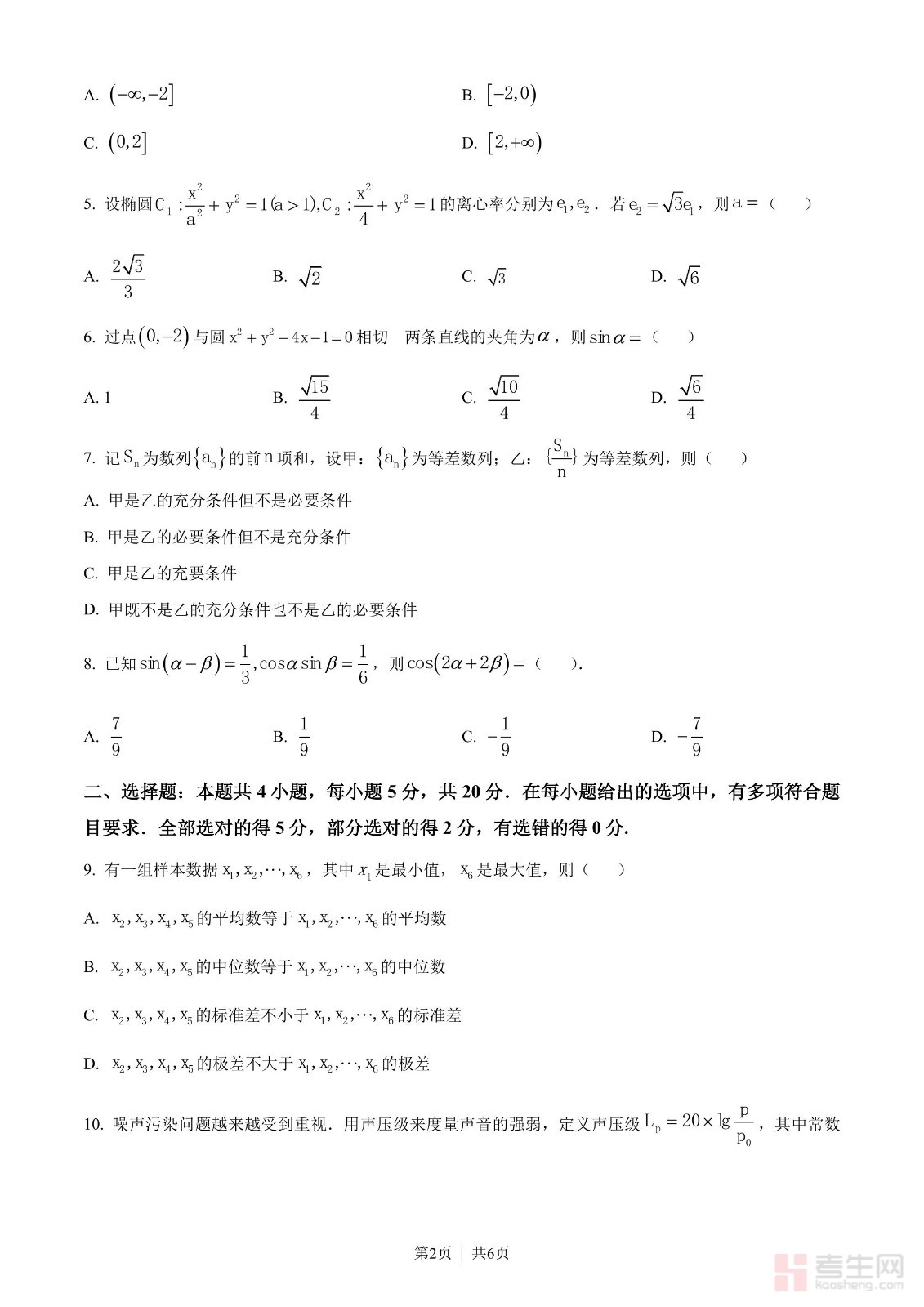 2023年高考数学试卷(新课标Ⅱ卷)(空白卷)