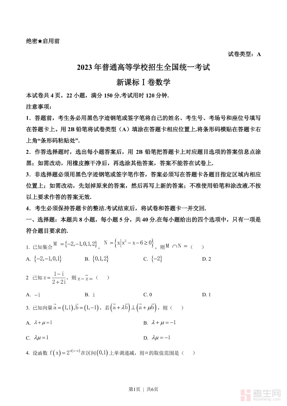 2023年高考数学试卷(新课标Ⅰ卷)(空白卷)