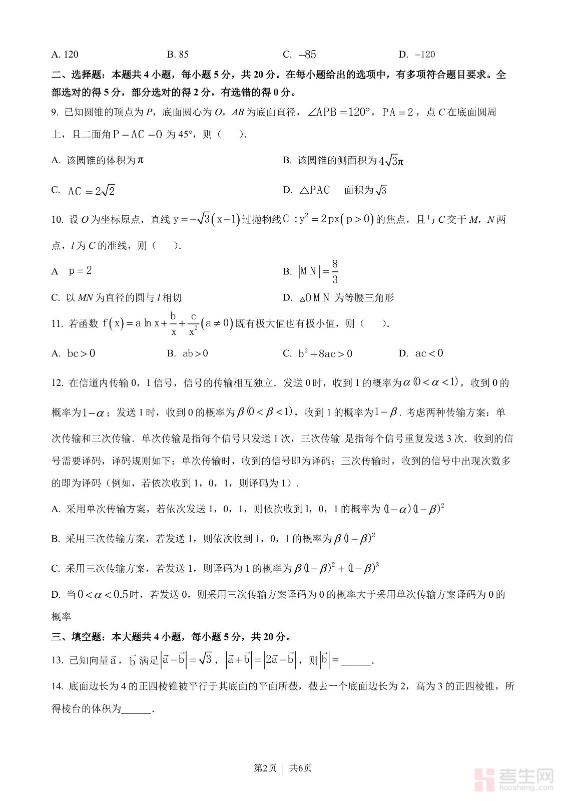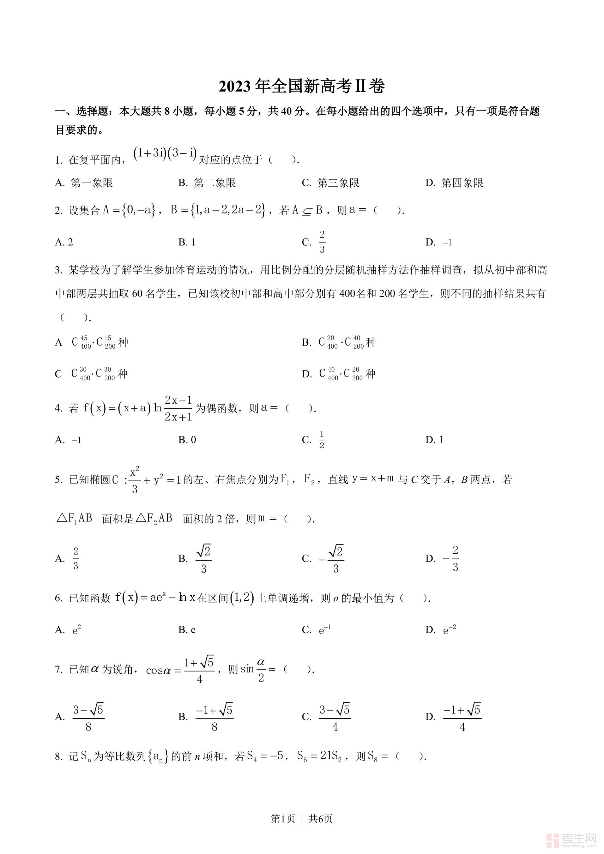2023年高考数学试卷(新课标Ⅱ卷)(空白卷)