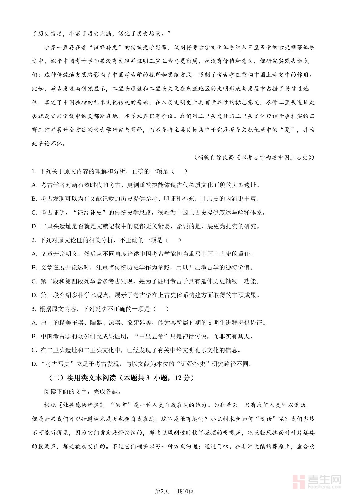 2023年高考语文试卷(全国乙卷)(解析卷)