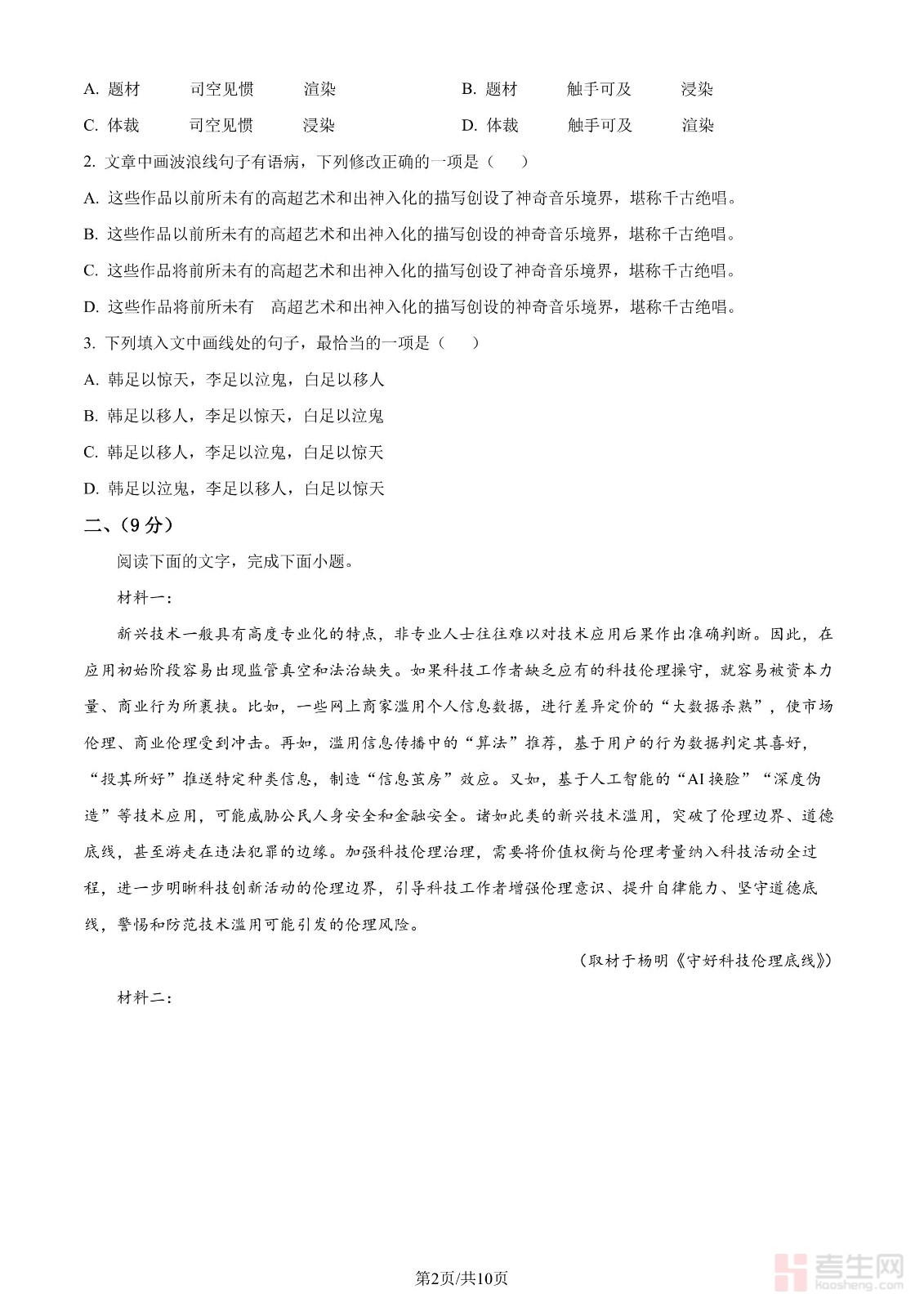 2023年高考语文试卷(上海)(春考)(空白卷)