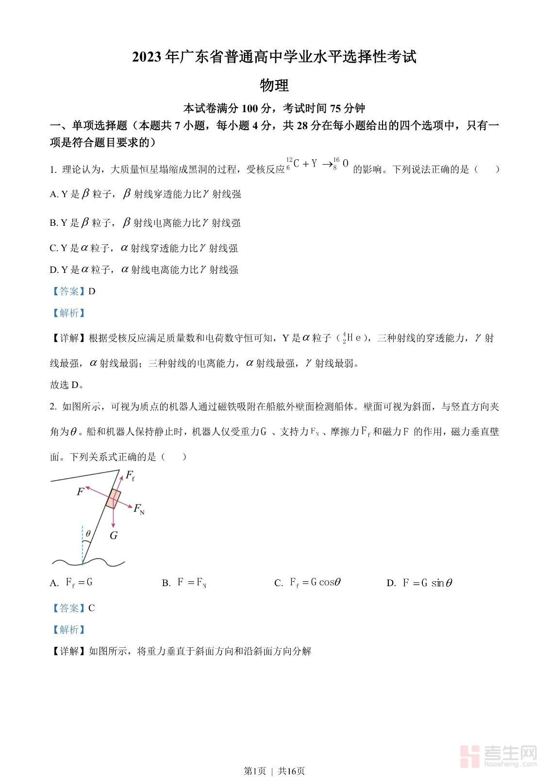 2023年高考物理试卷(广东)(解析卷)