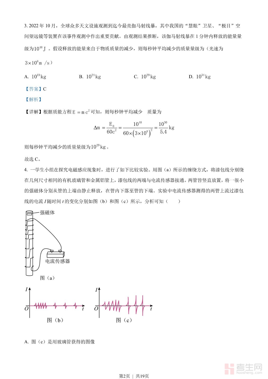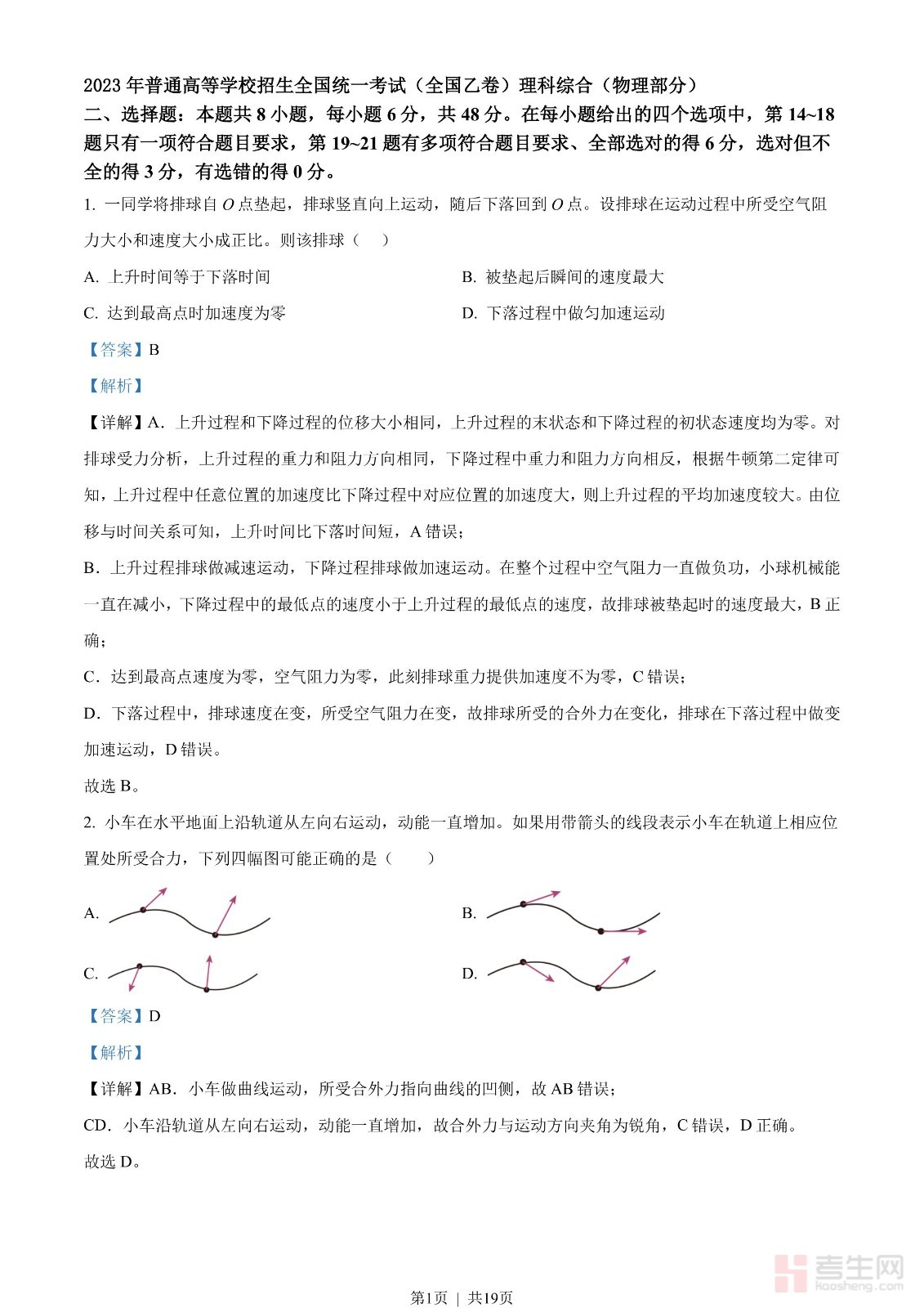 2023年高考物理试卷(全国乙卷)(解析卷)
