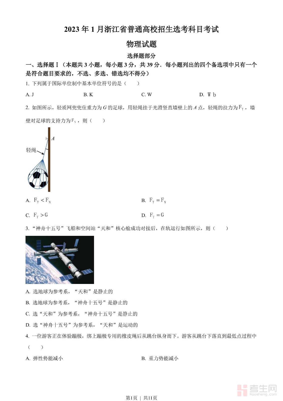2023年高考物理试卷(浙江)【1月】(空白卷)