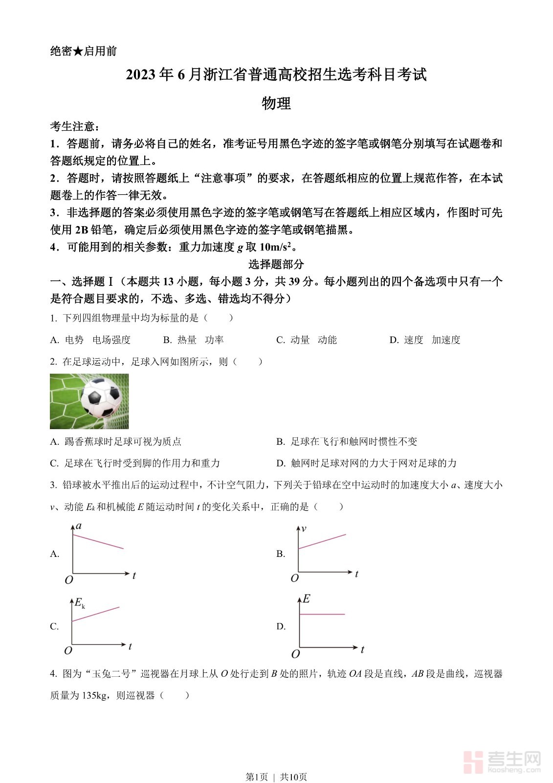 2023年高考物理试卷(浙江)【6月】(空白卷)