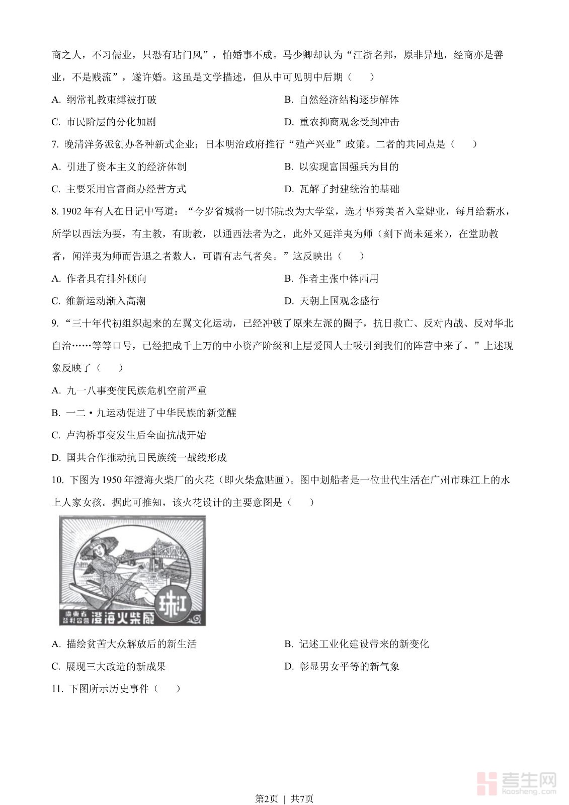 2023年高考历史试卷(浙江)(6月)(空白卷)