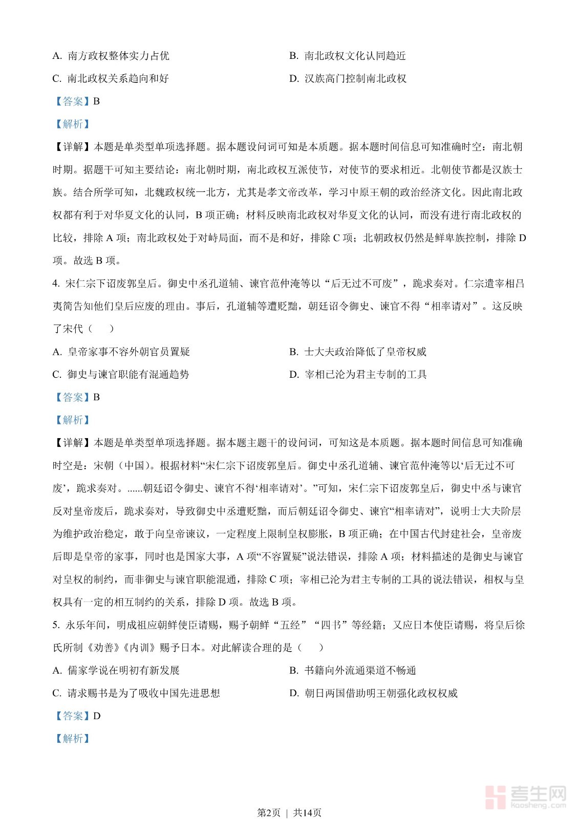 2023年高考历史试卷(山东)(解析卷)