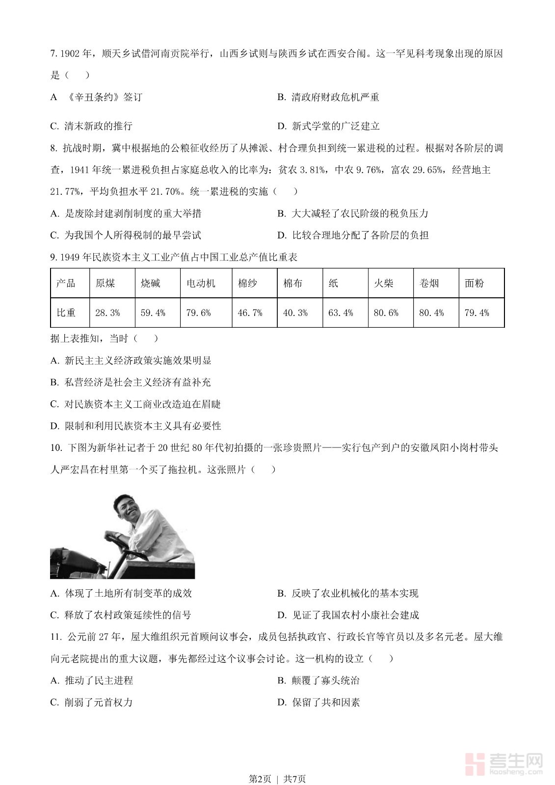 2023年高考历史试卷(浙江)(6月)(空白卷)
