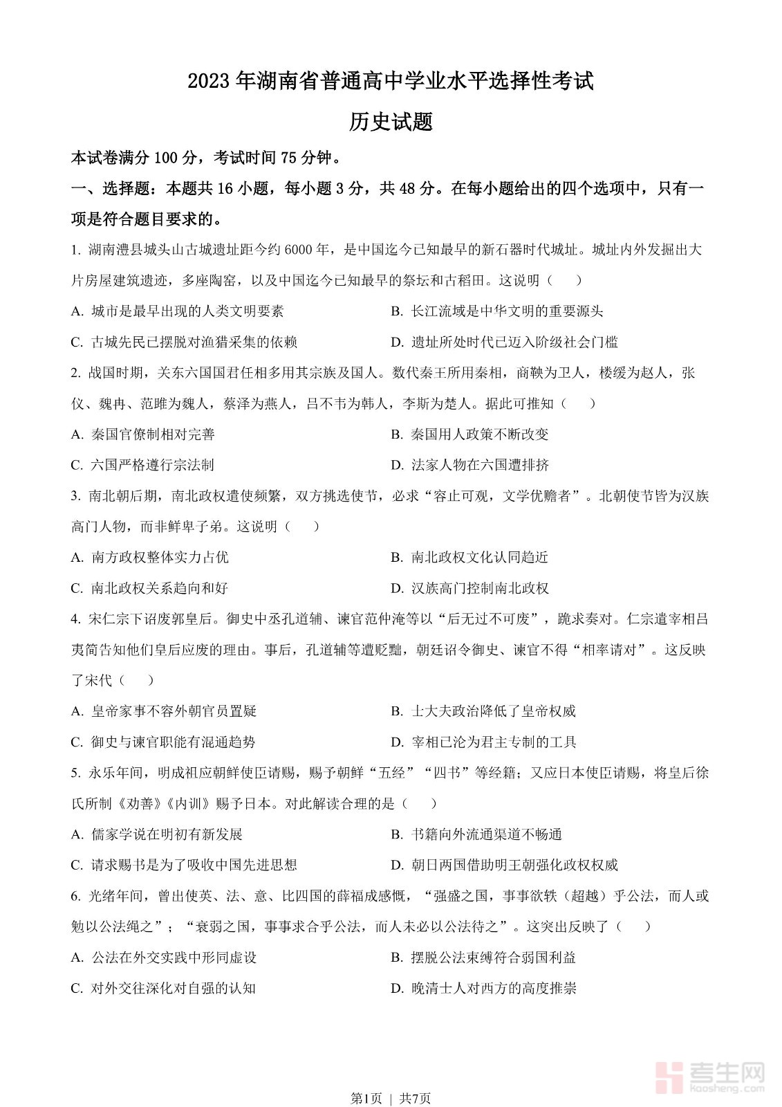 2023年高考历史试卷(全国甲卷)(解析卷)