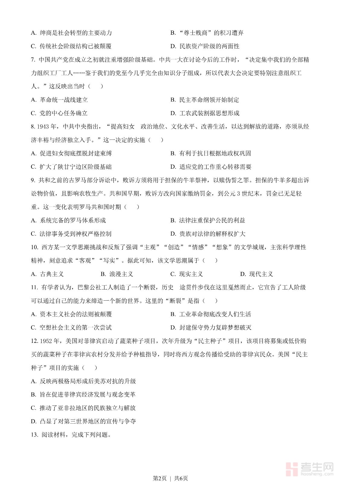 2023年高考历史真题