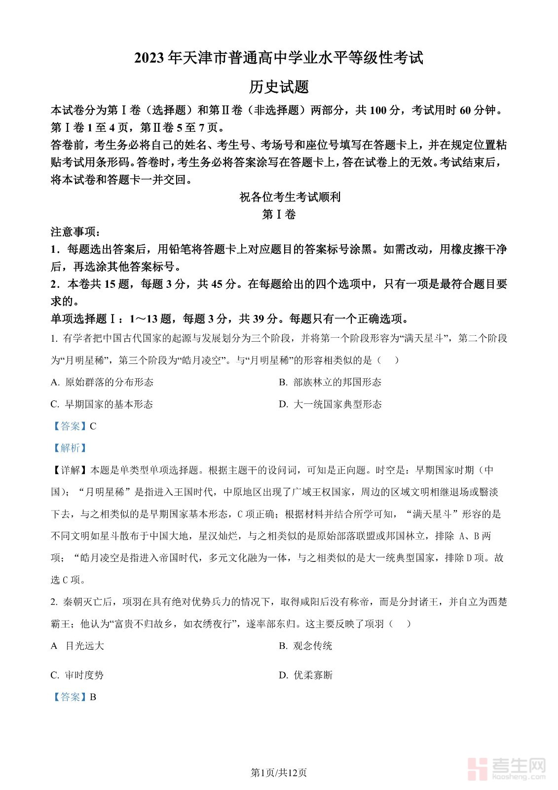 2023年高考历史试卷(全国甲卷)(解析卷)
