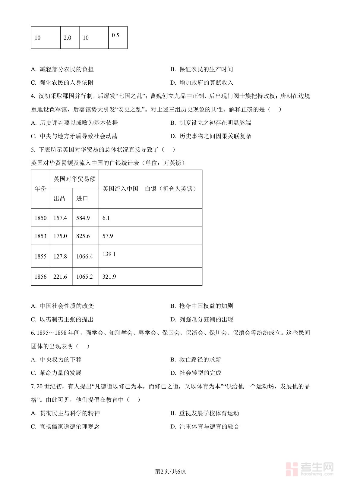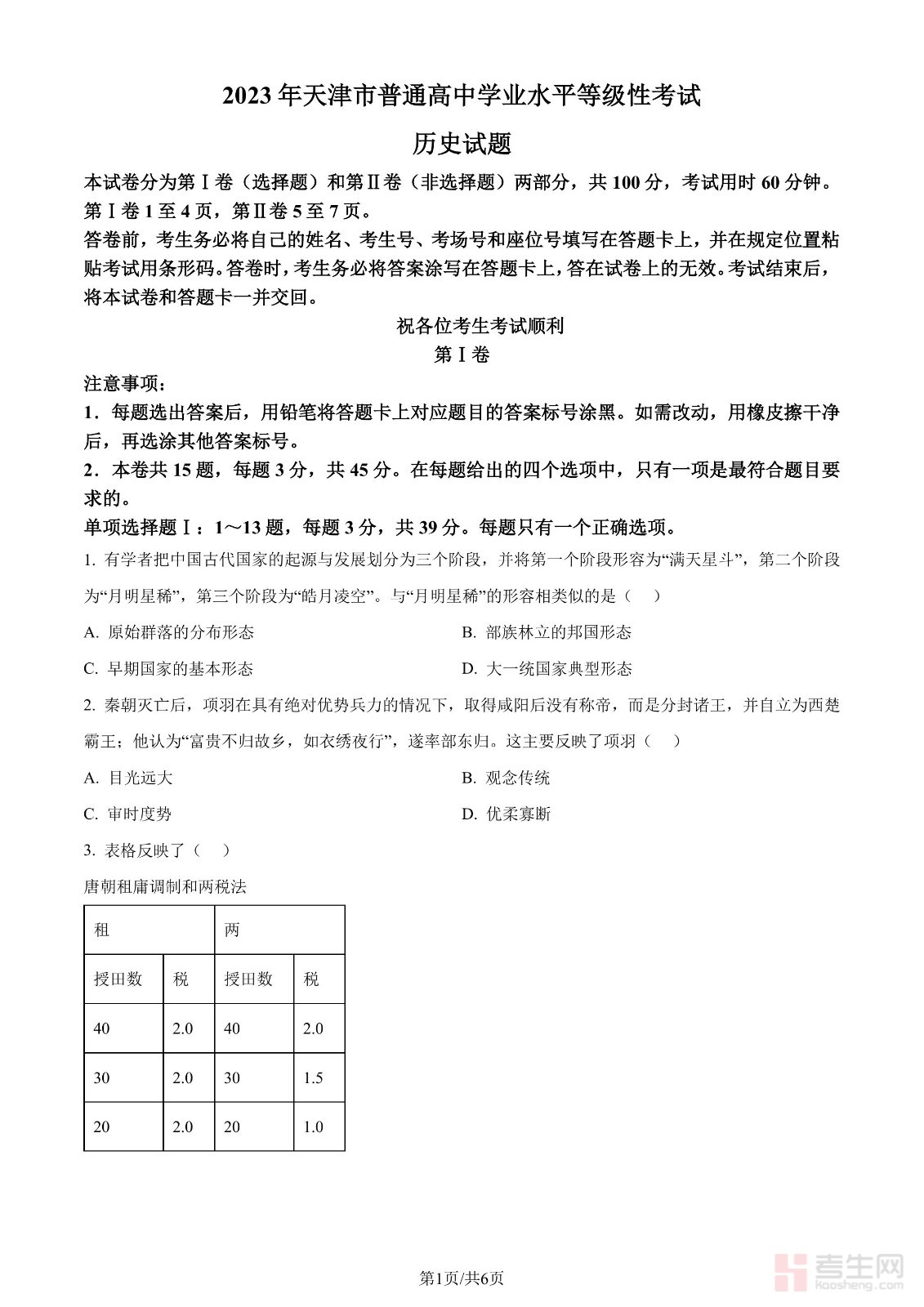 2023年高考历史试卷(浙江)(6月)(空白卷)