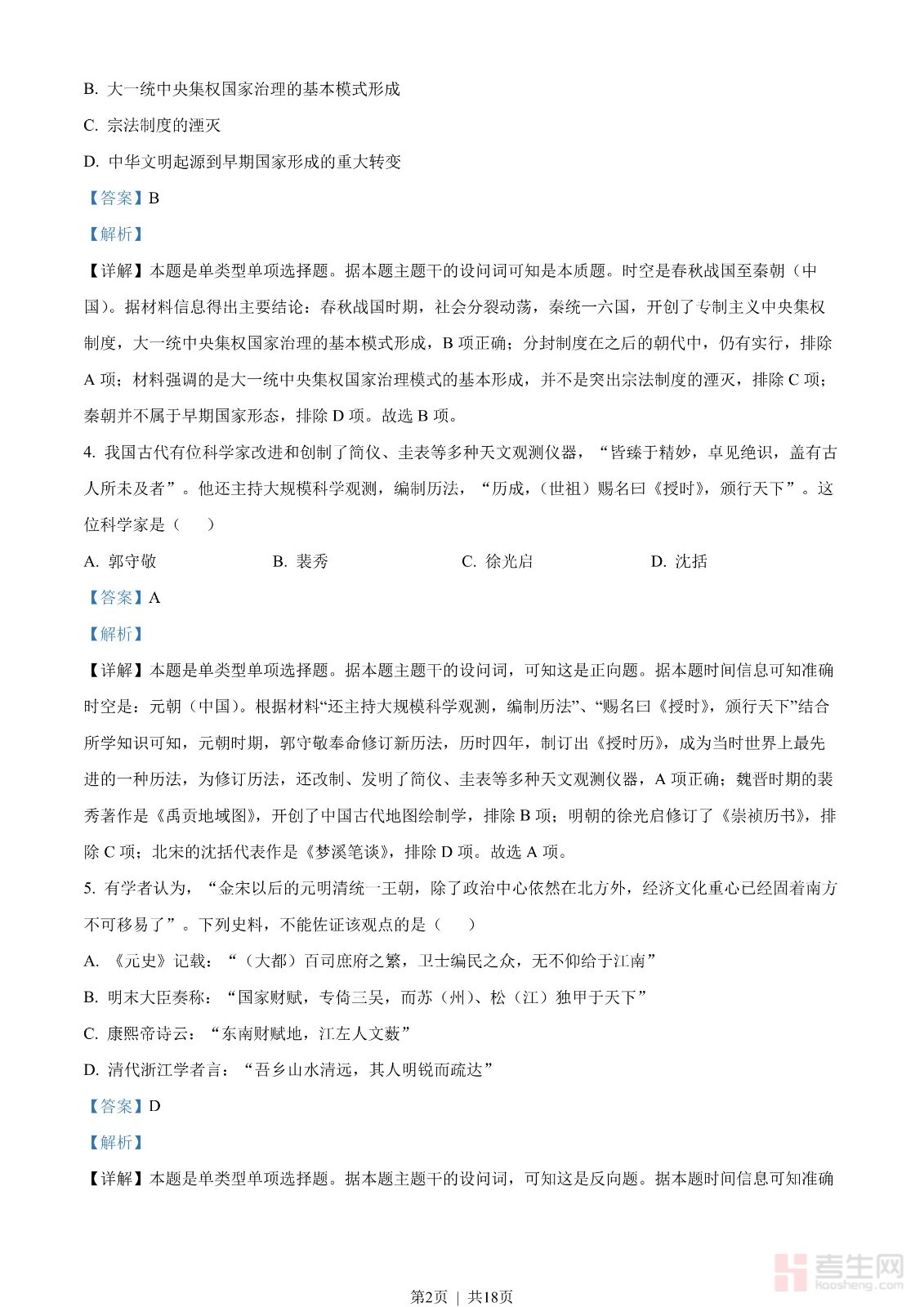 2023年高考历史试卷(全国甲卷)(解析卷)