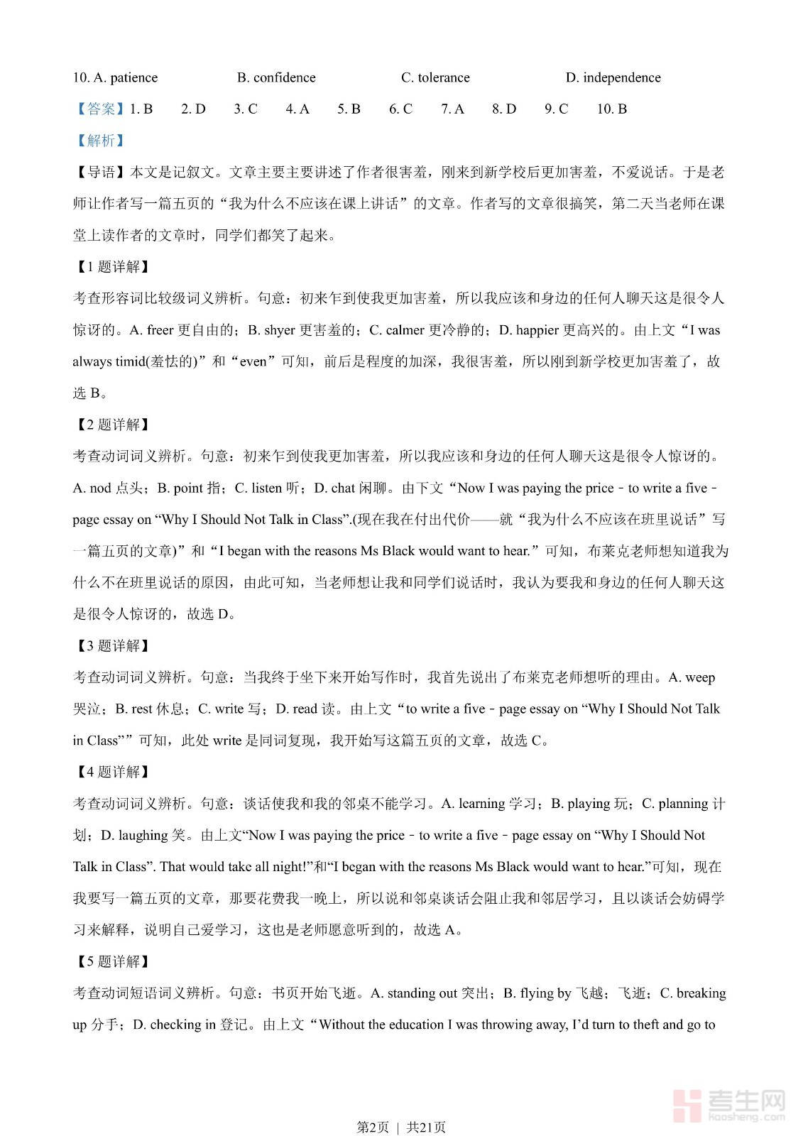 2023年高考英语试卷(上海)(春考)(解析卷)