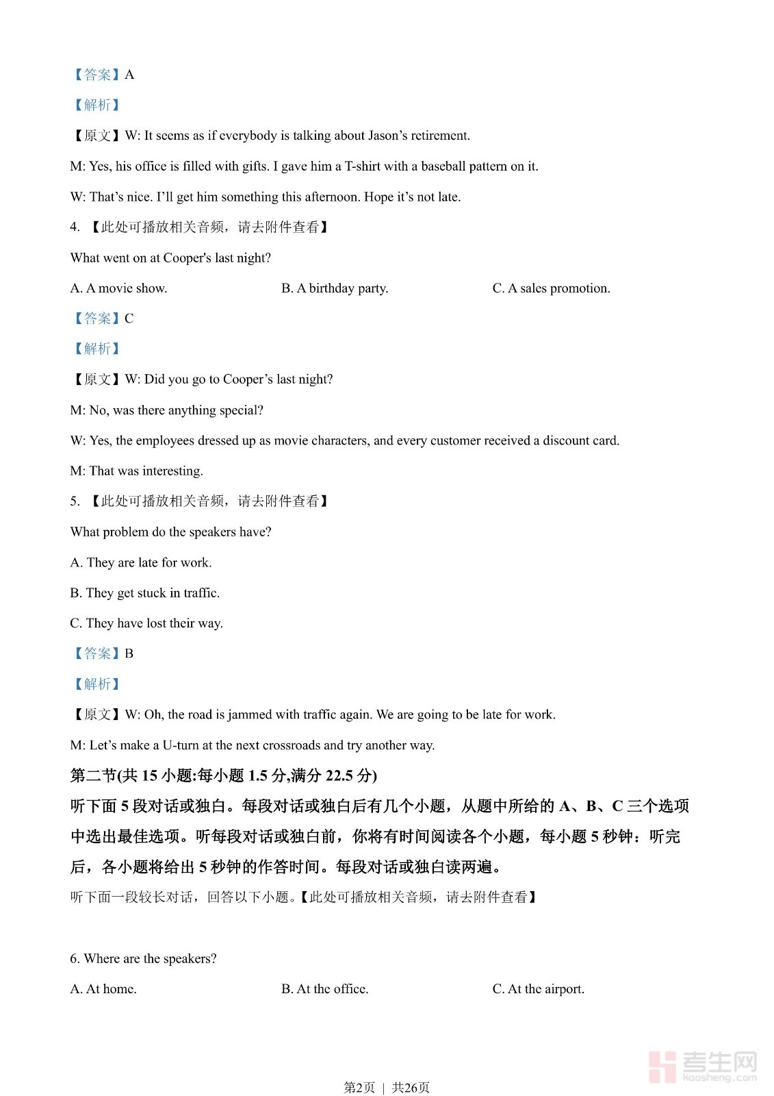 2023年高考英语试卷(上海)(春考)(解析卷)