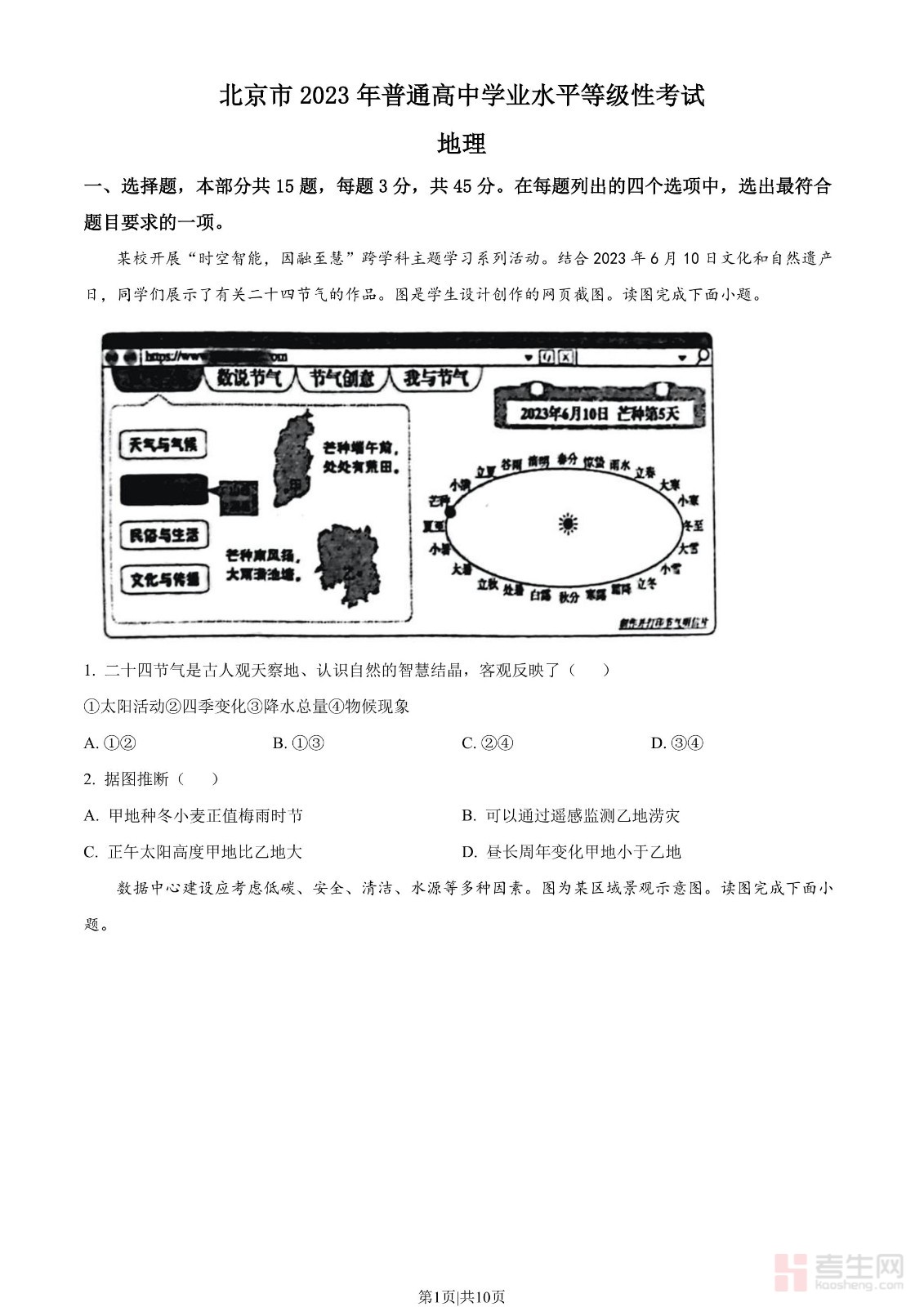 2023年高考地理试卷(全国乙卷)(空白卷)