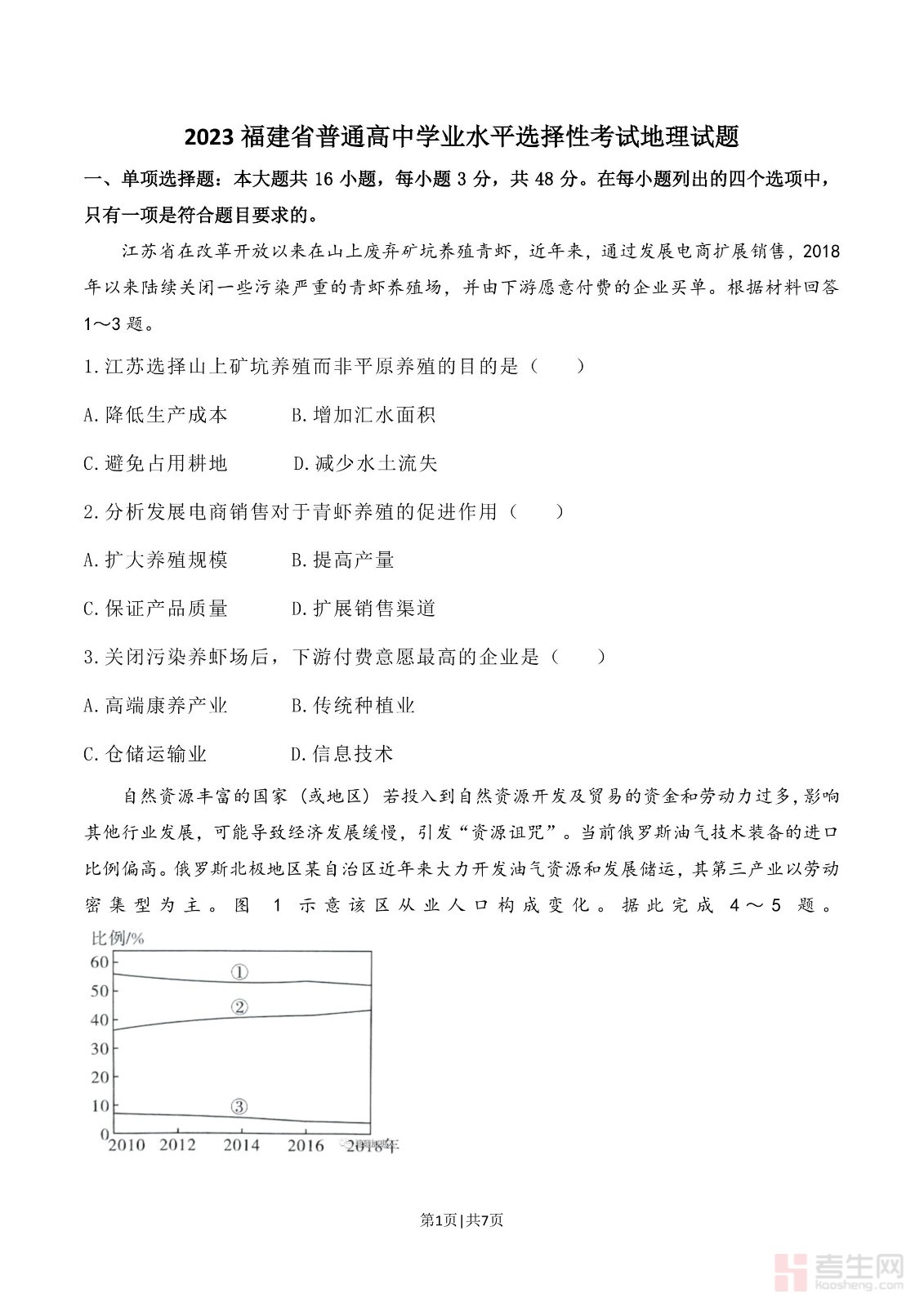 2023年高考地理试卷(全国乙卷)(空白卷)