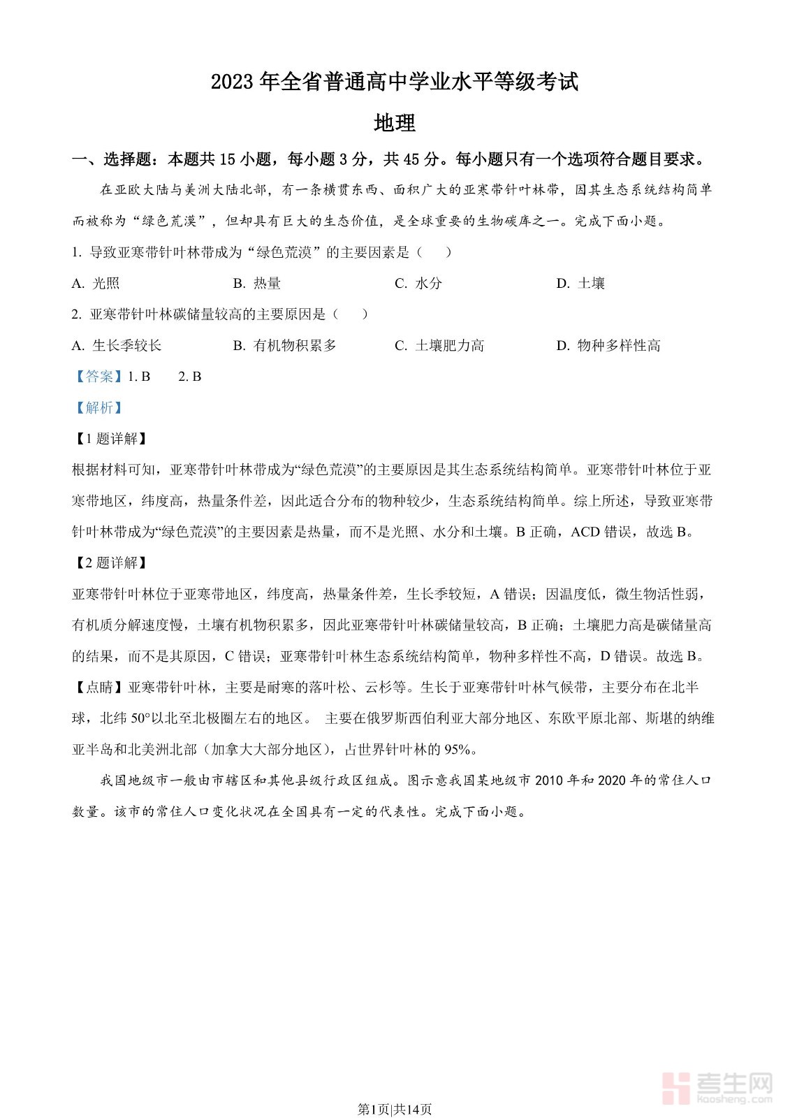 2023年高考地理试卷(全国乙卷)(空白卷)