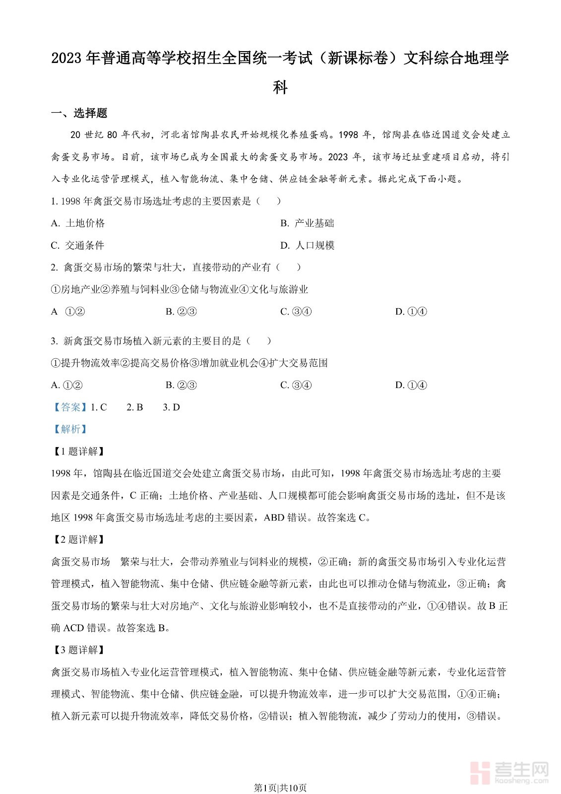 2023年高考地理试卷(全国乙卷)(空白卷)