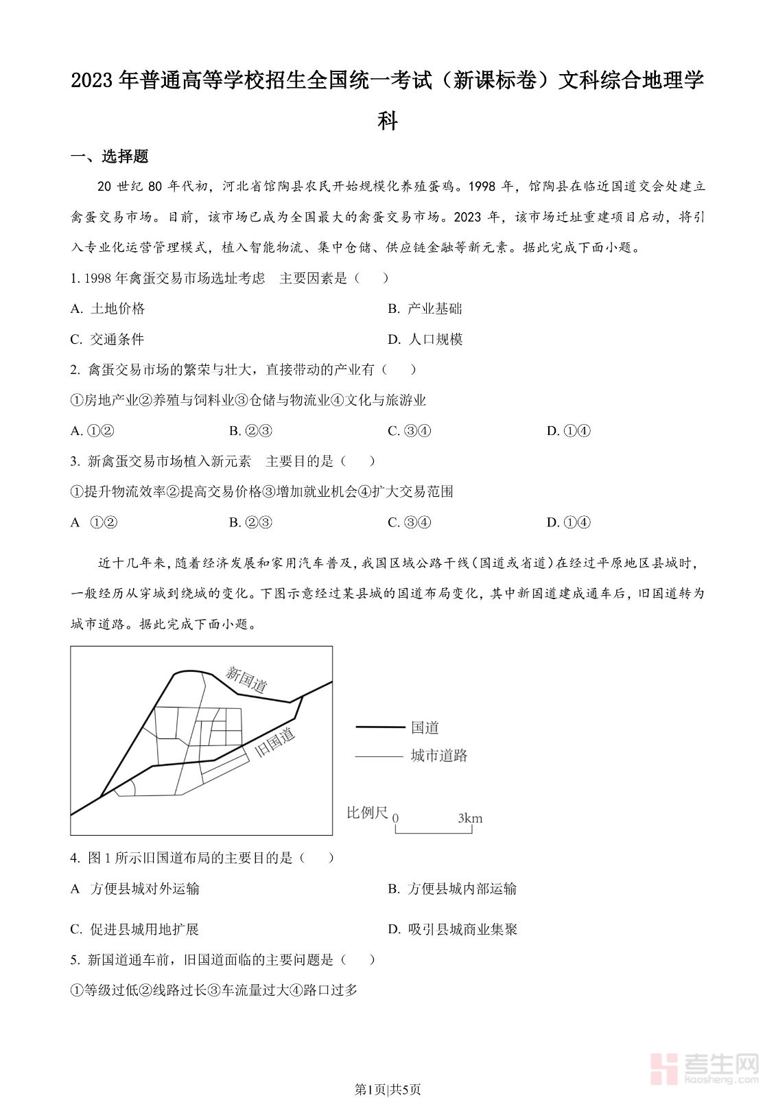 2023年高考地理试卷(全国乙卷)(空白卷)