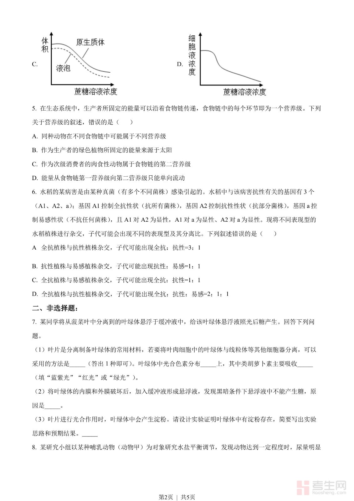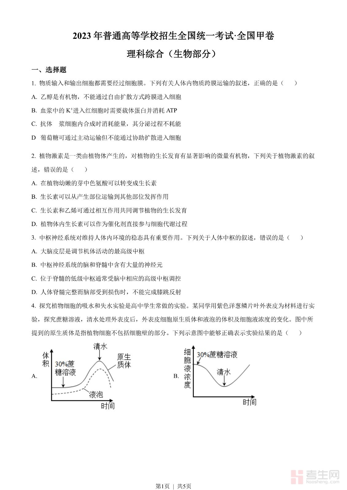 2023年高考生物试卷(全国甲卷)(空白卷)