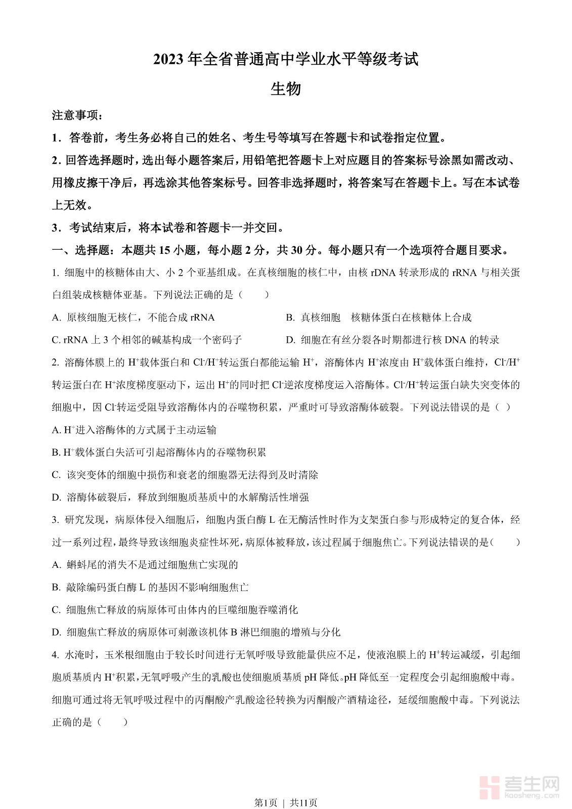 2023年高考生物试卷