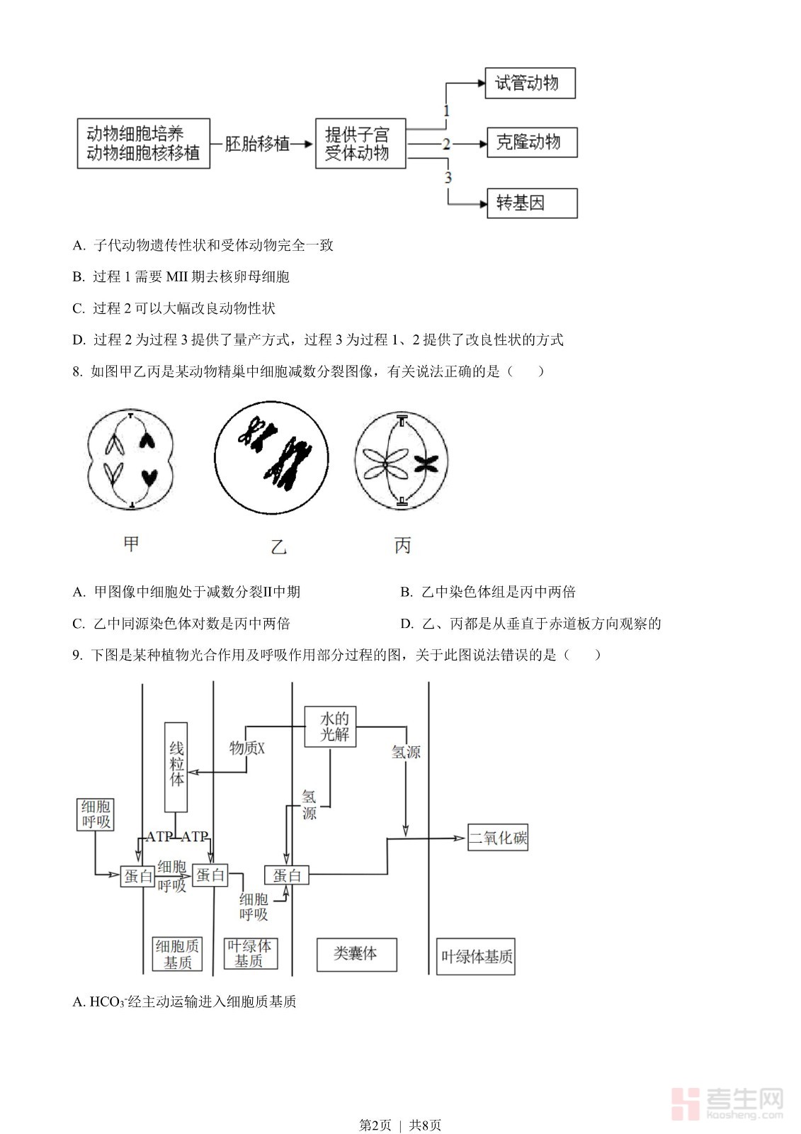 2023年高考生物试卷(河北)(空白卷)
