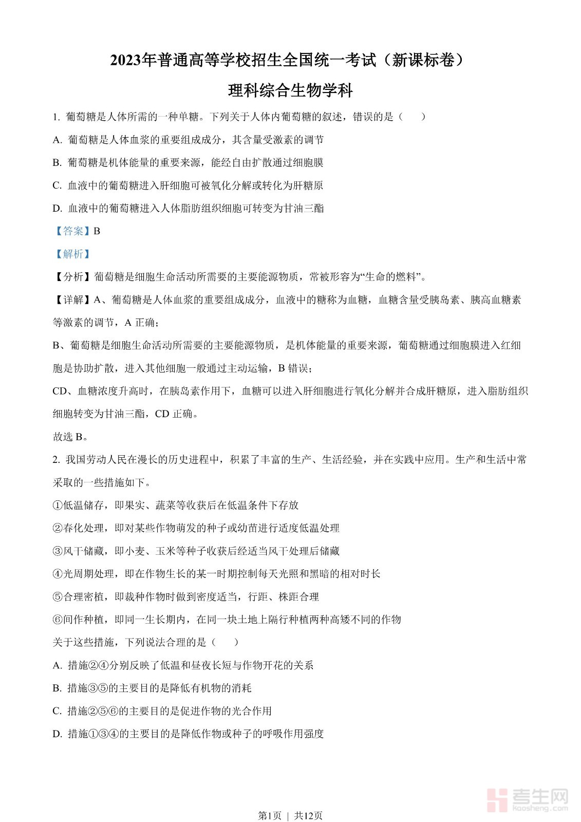 2023年高考生物试卷