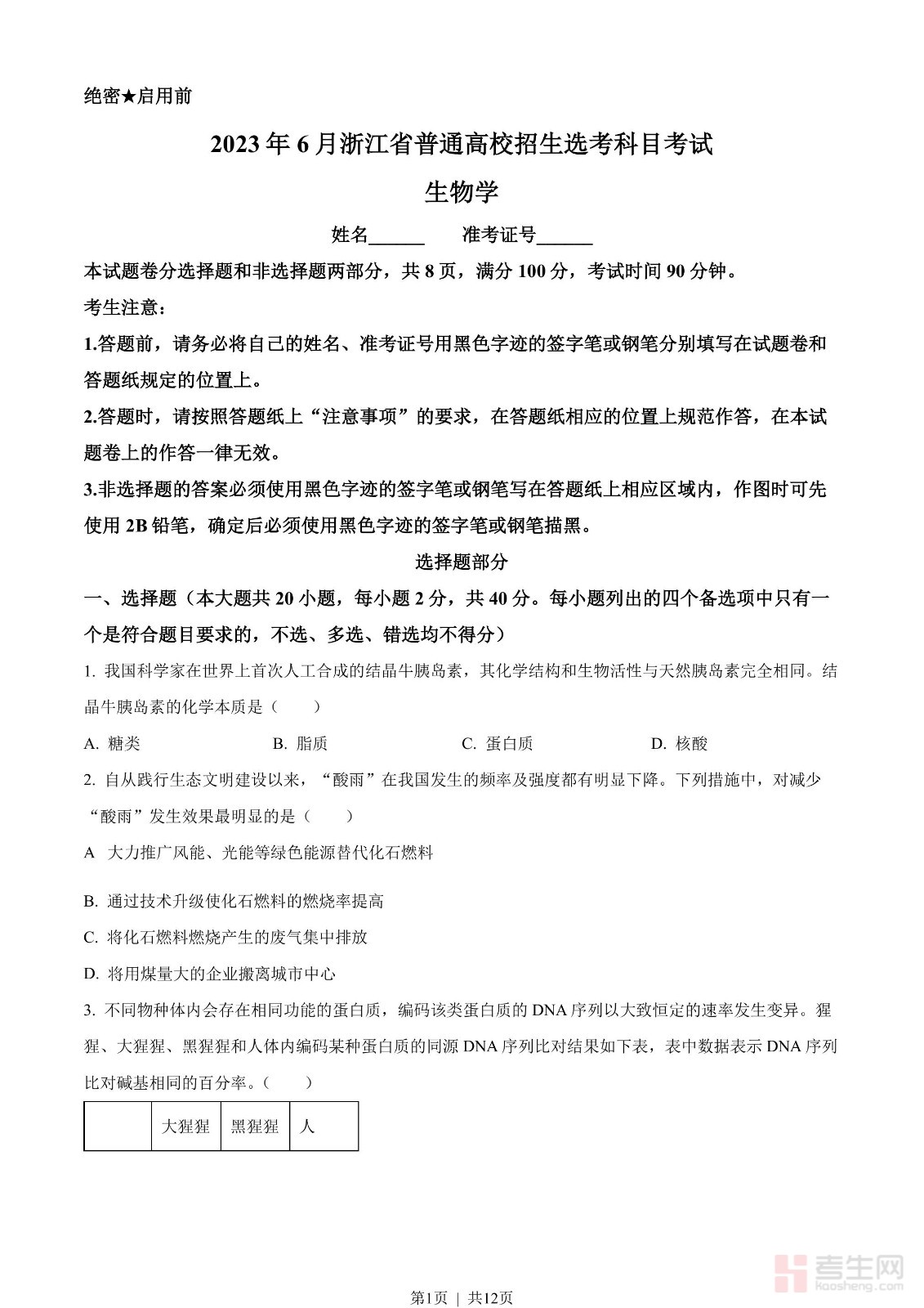 2023年高考生物试卷
