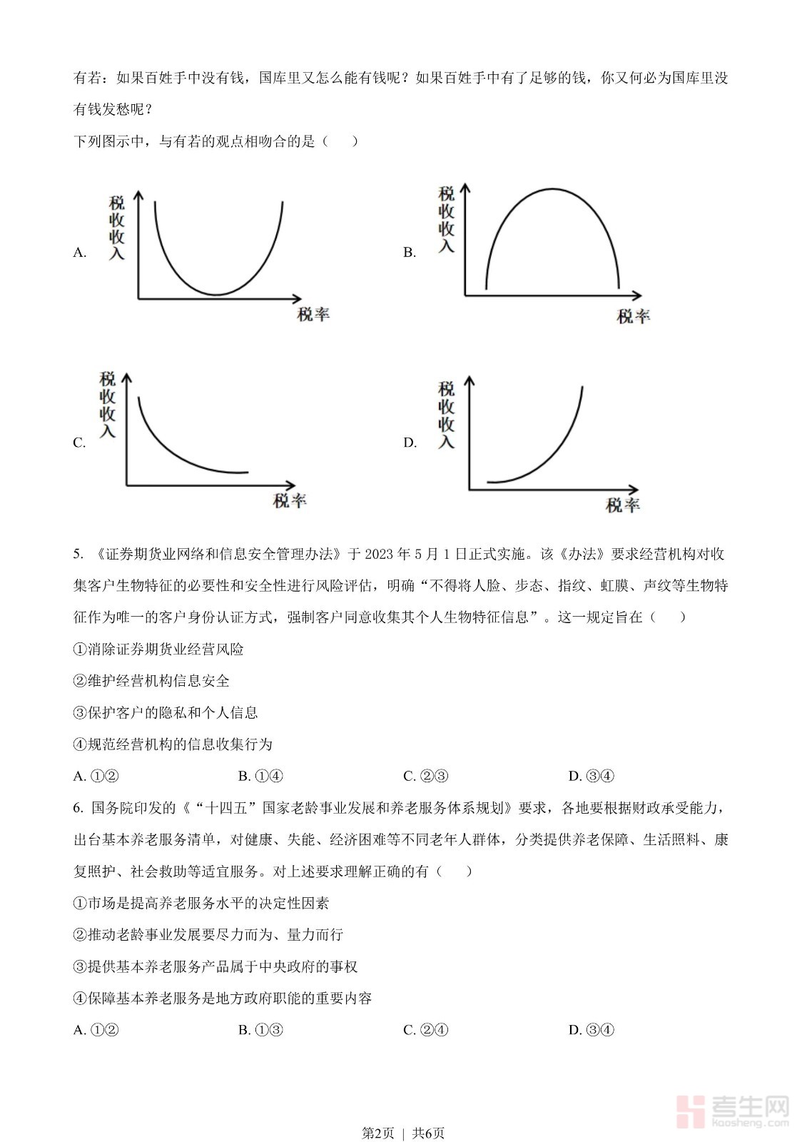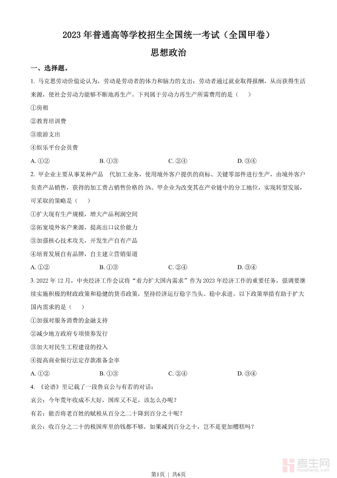 2023年高考政治试卷(全国甲卷)(空白卷)