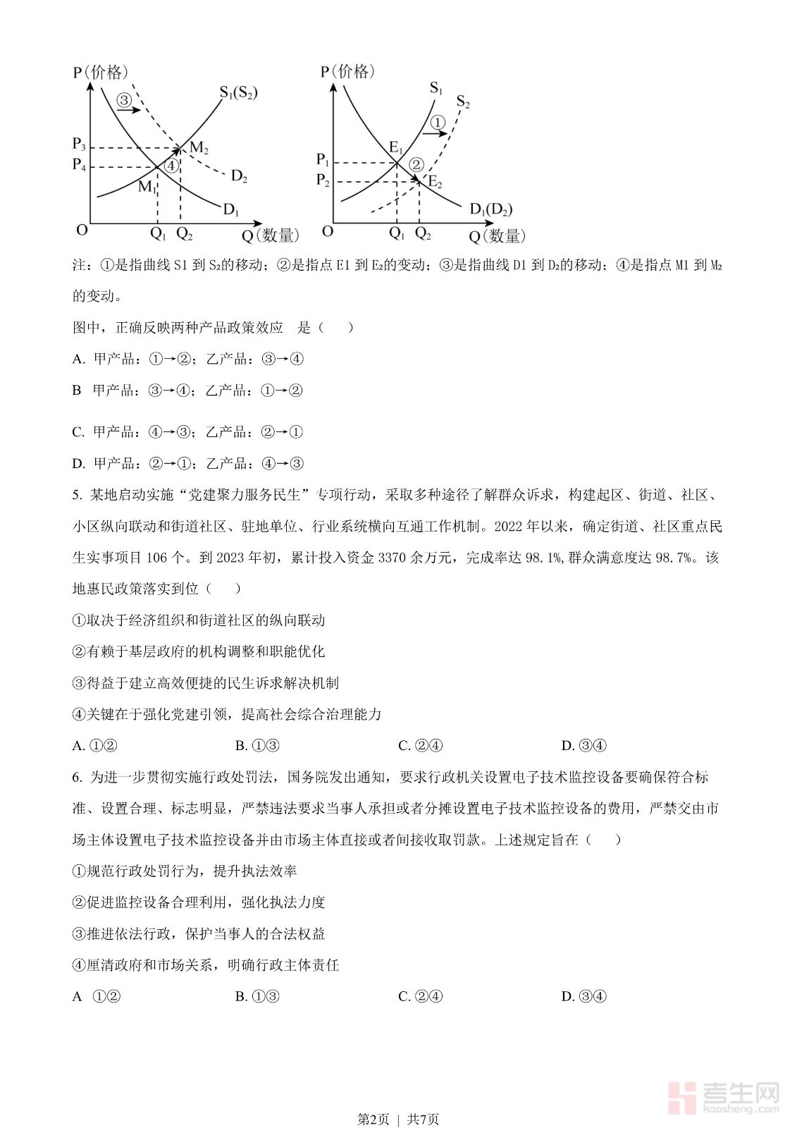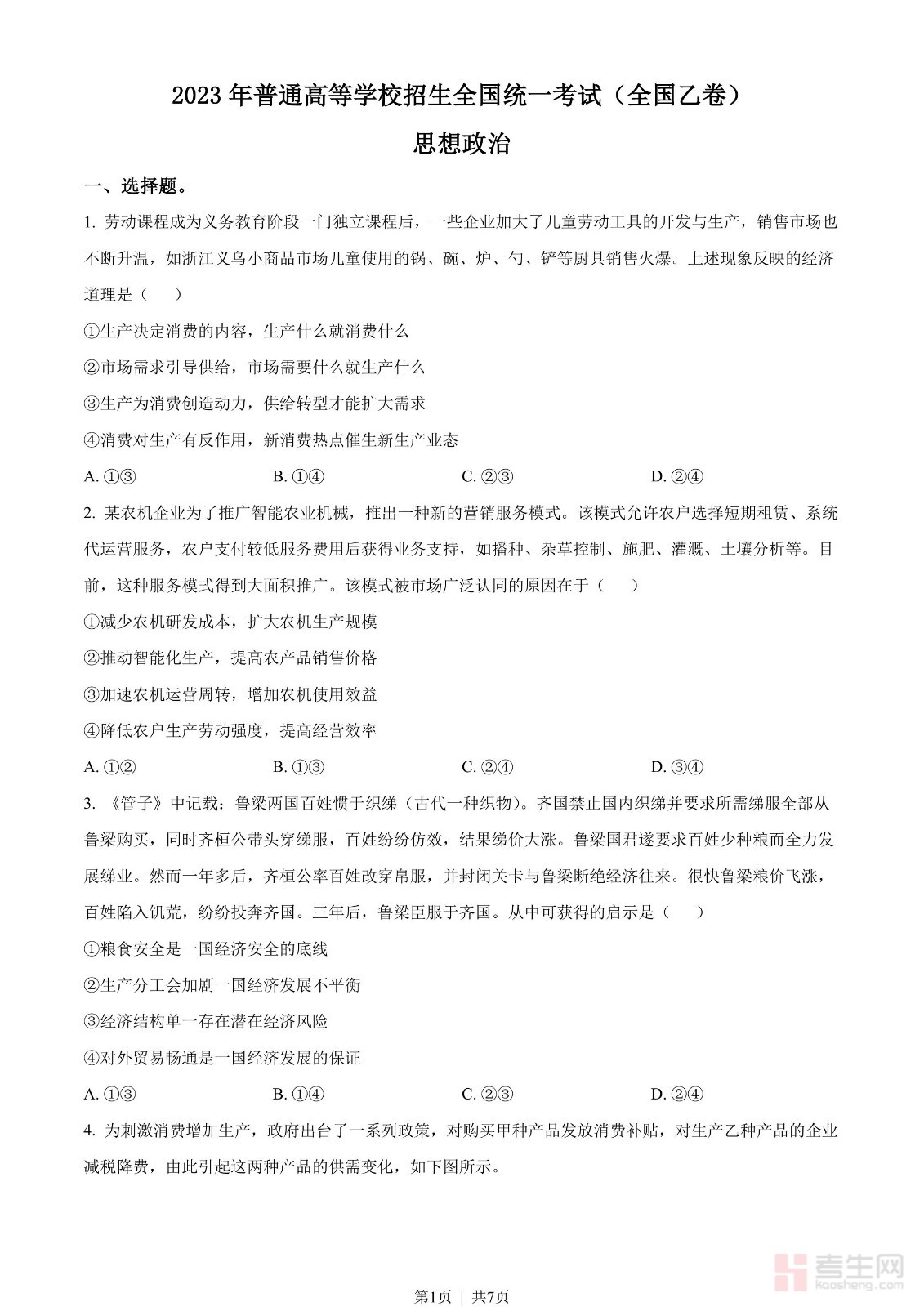 2023年高考政治试卷(全国乙卷)(空白卷)