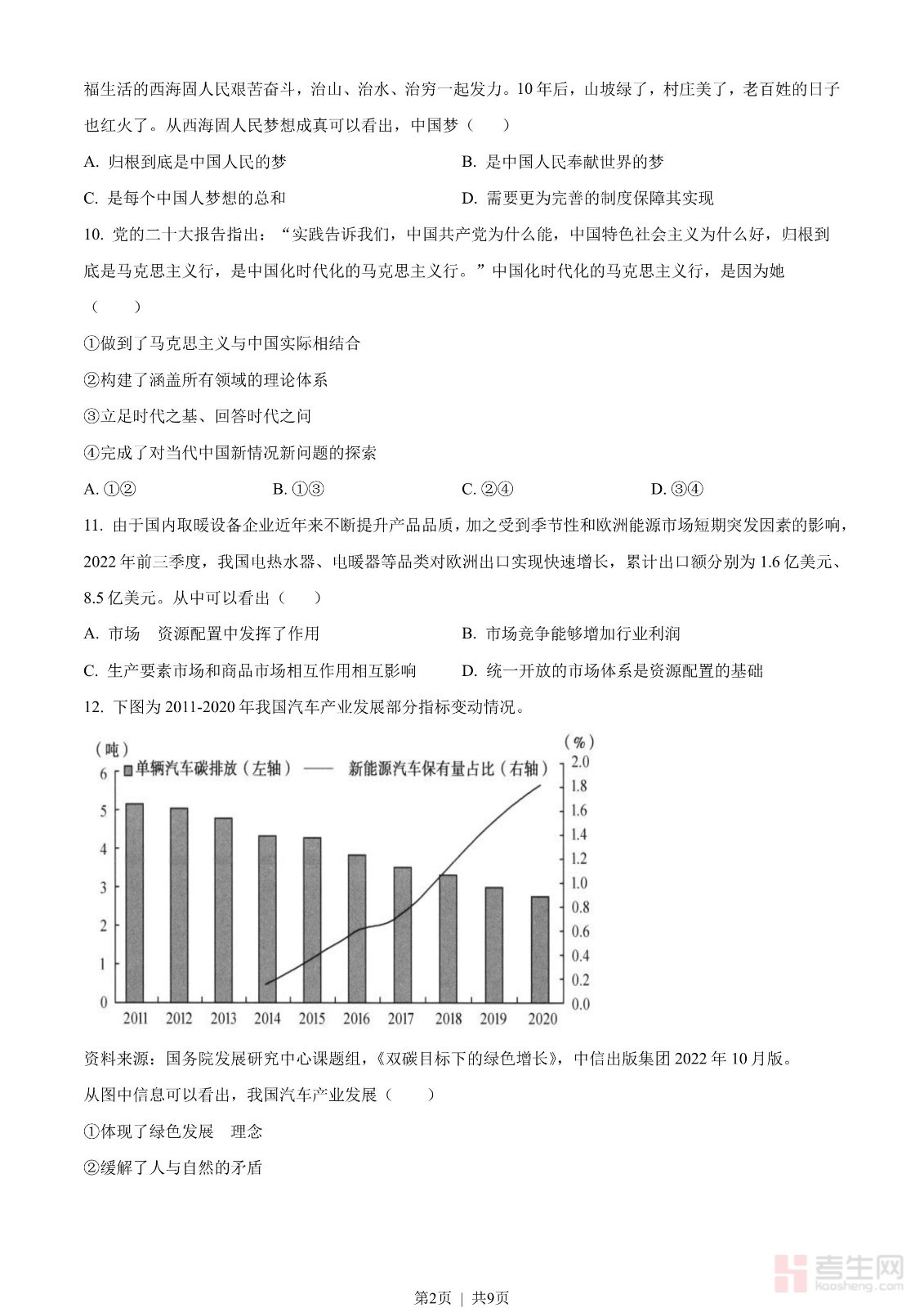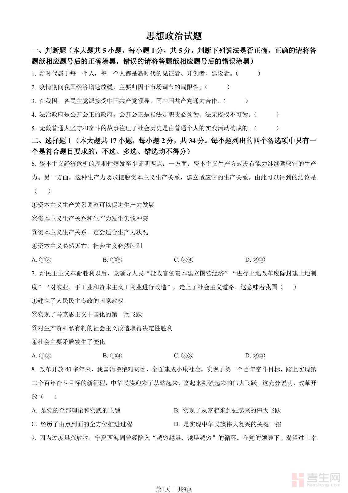2023年高考政治试卷(浙江)(1月)(空白卷)