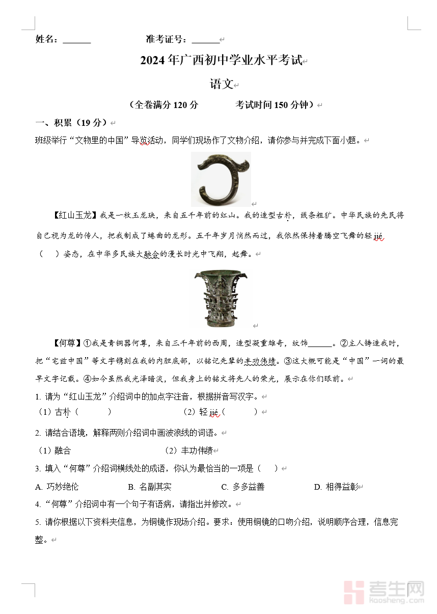 2024年中考语文真题