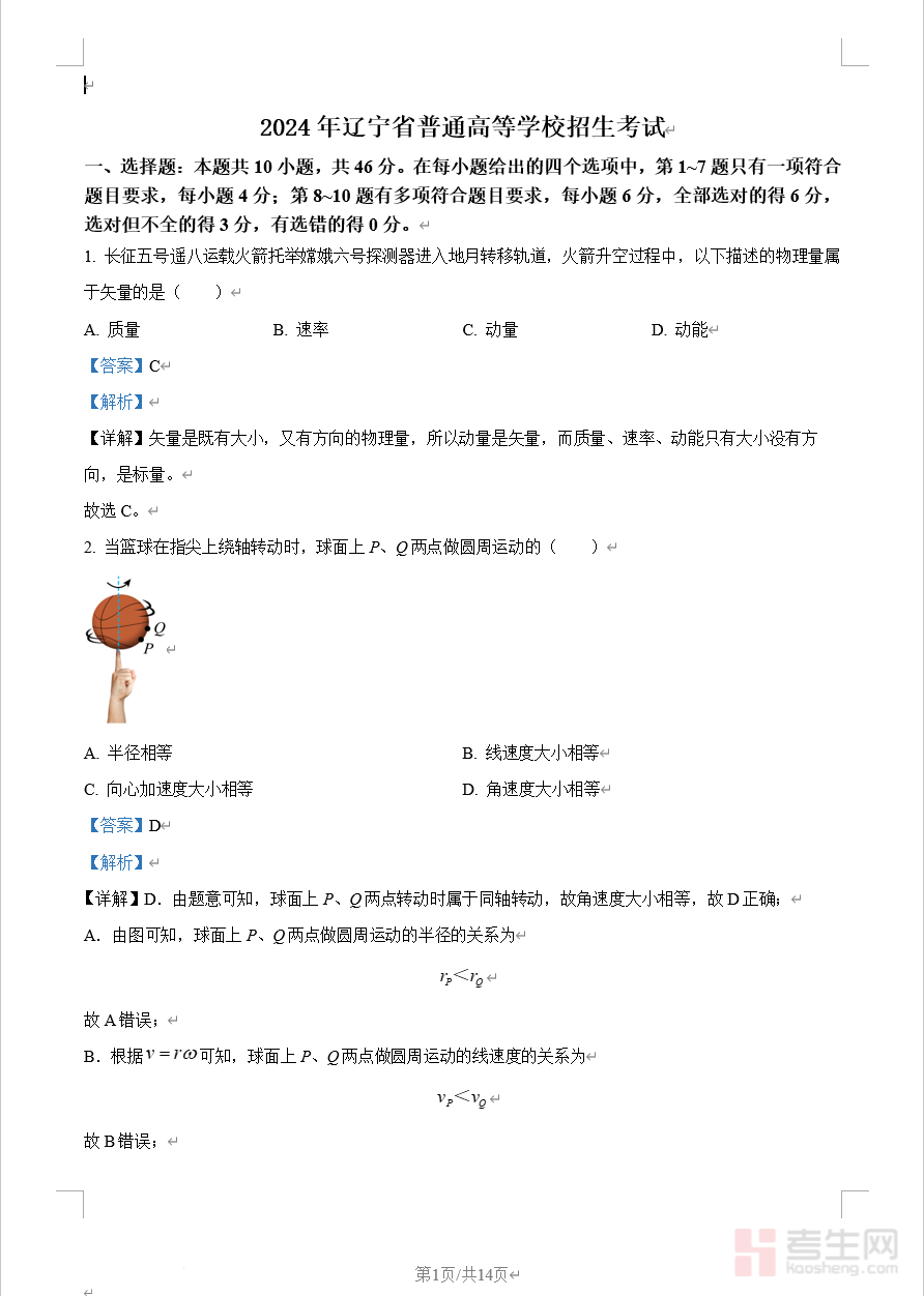 2024年辽宁省普通高等学校招生考试