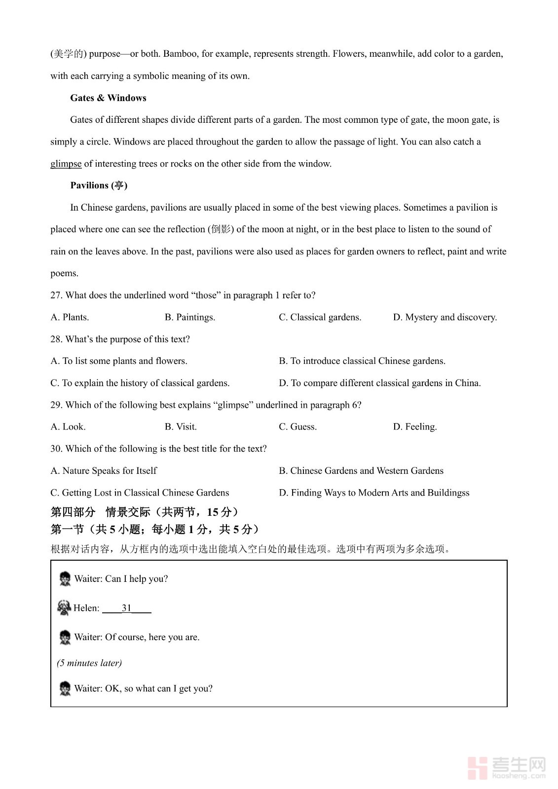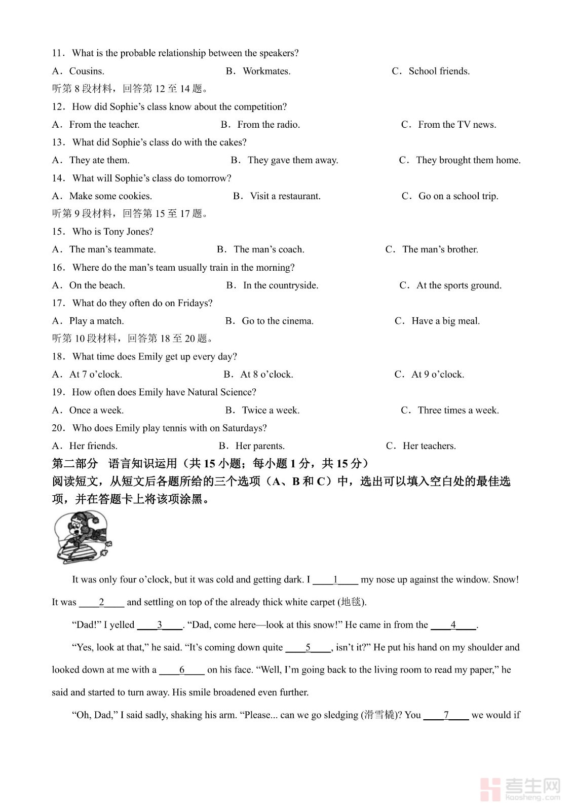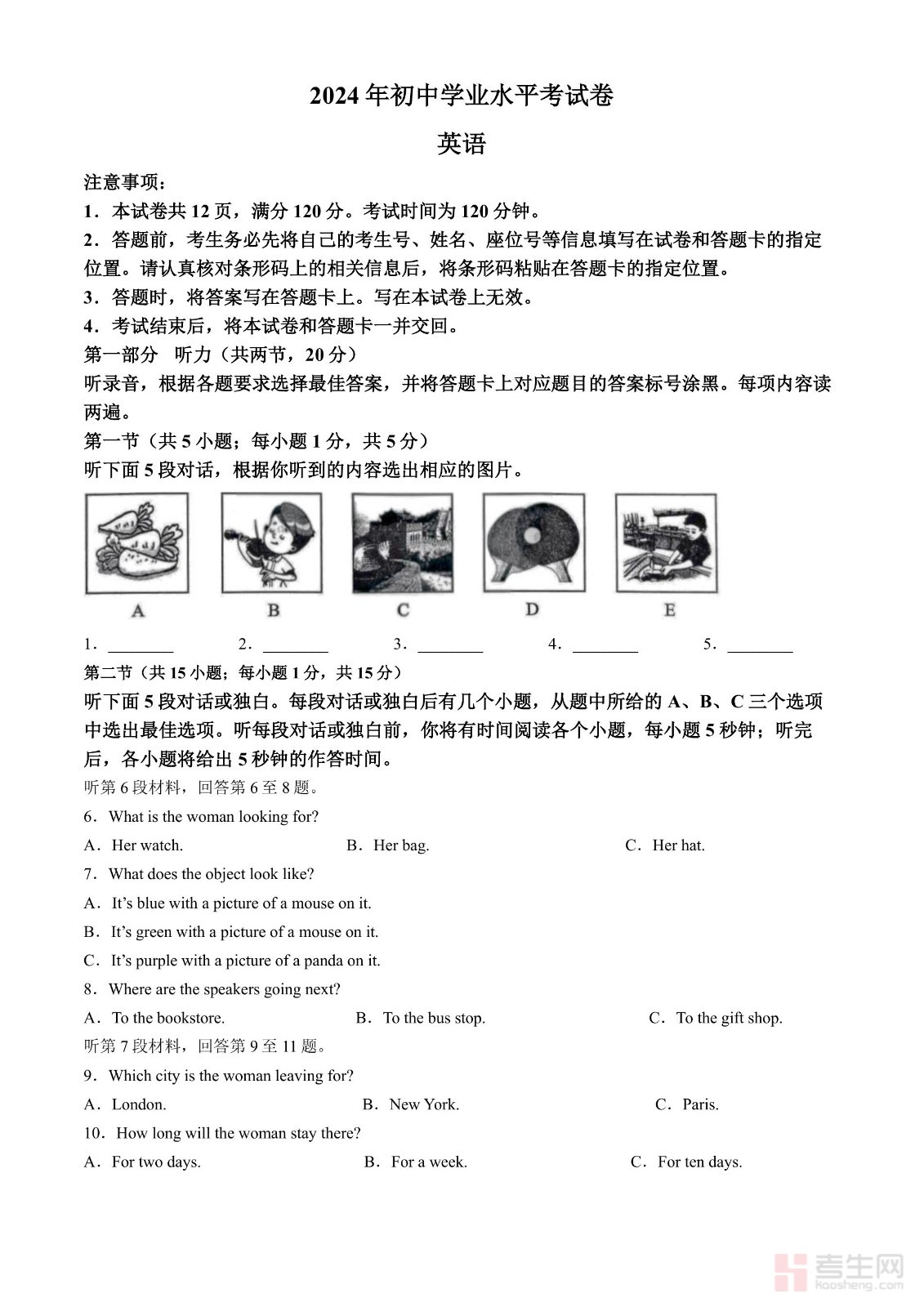 2024年湖北省中考英语真题原版及解析版(含听力文件)