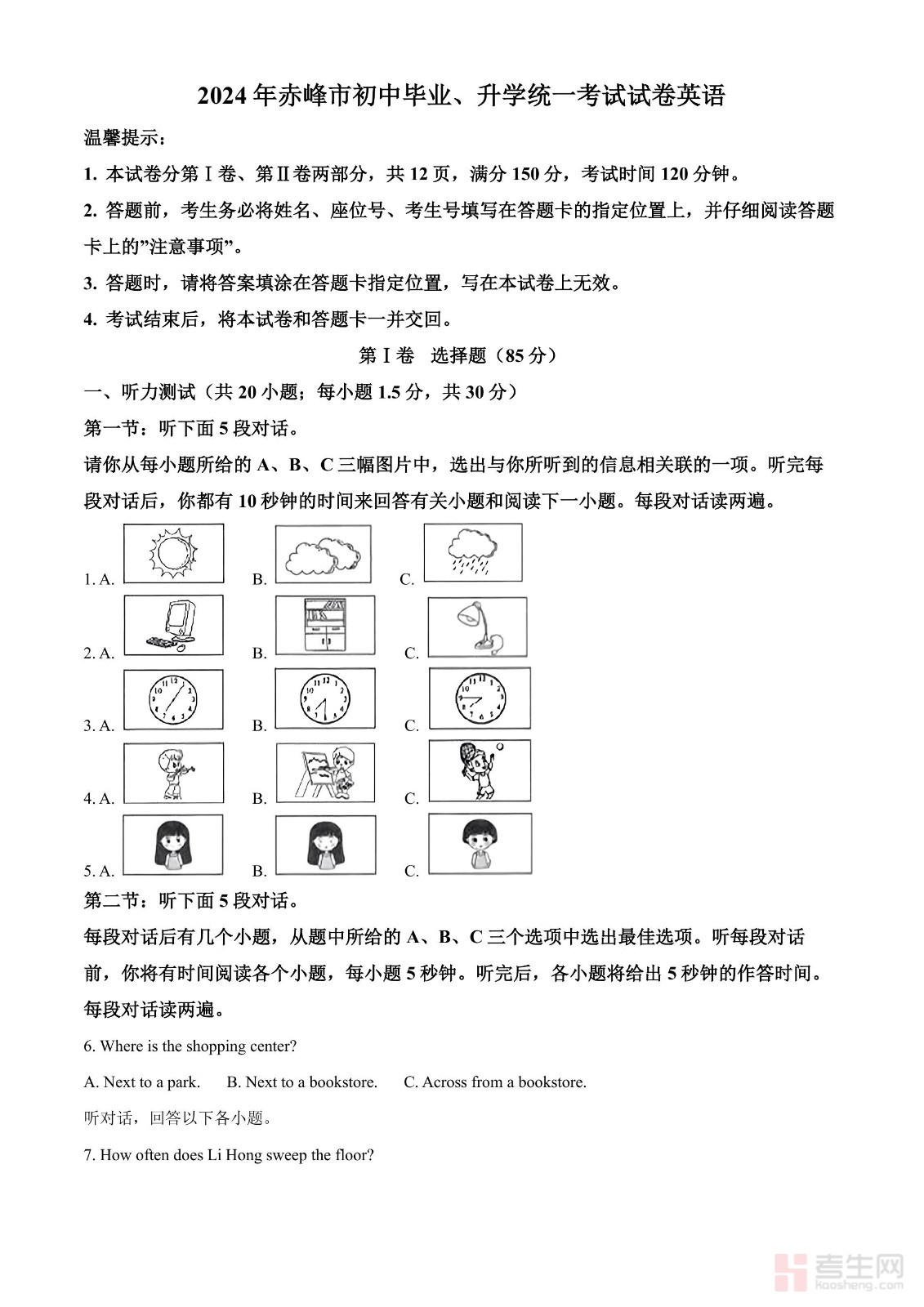 2024年内蒙古赤峰市中考英语真题(解析版)