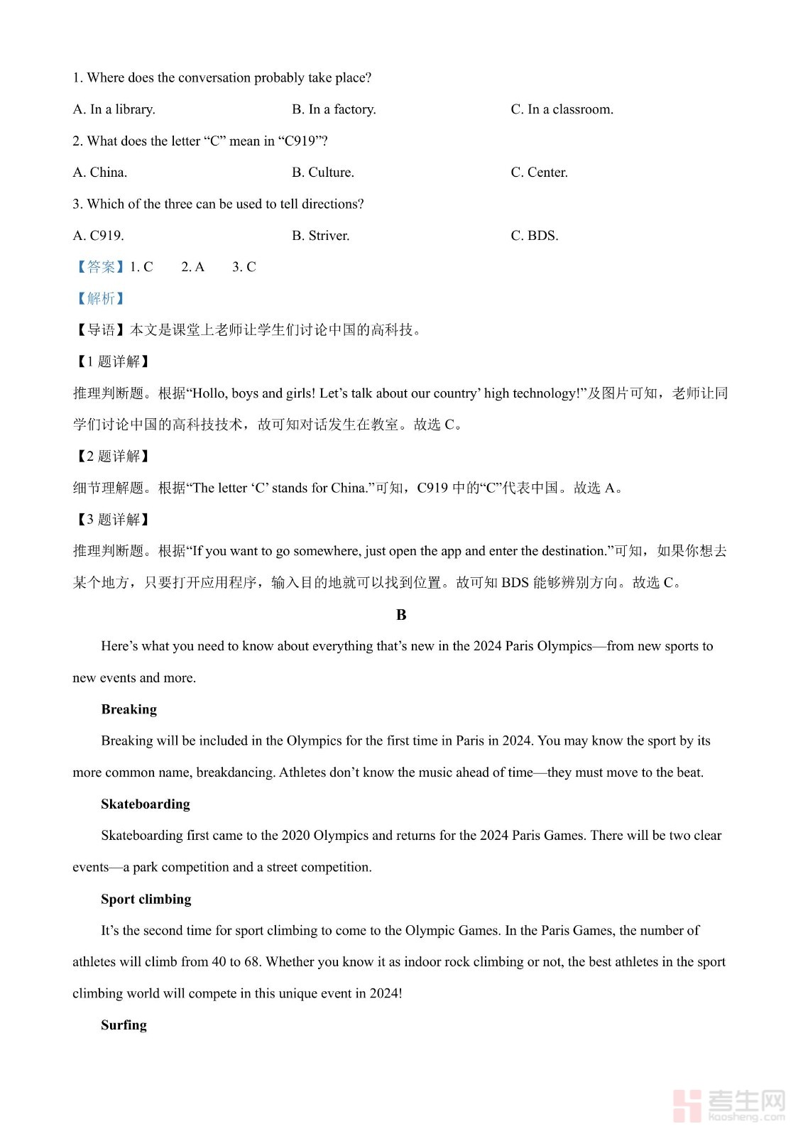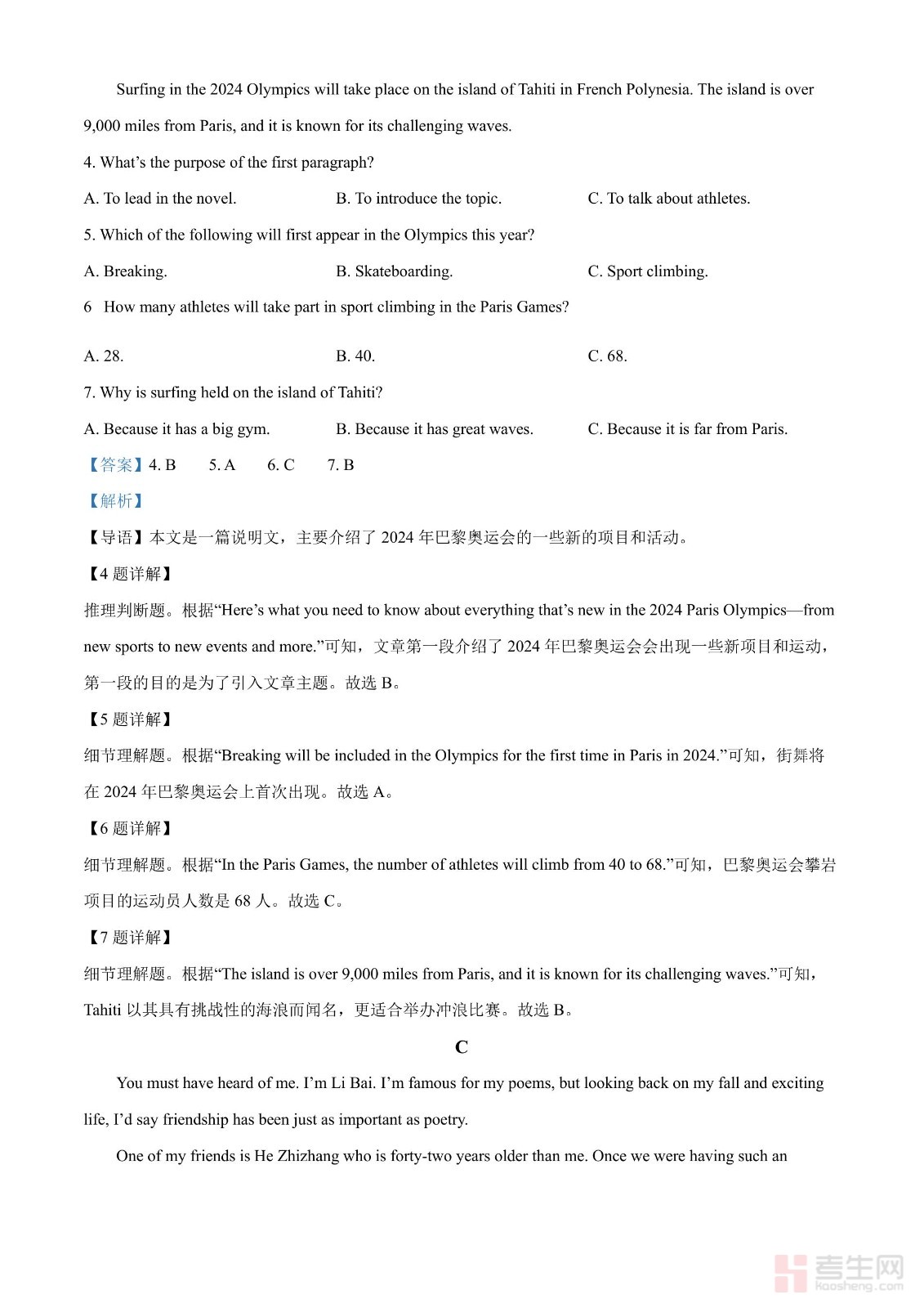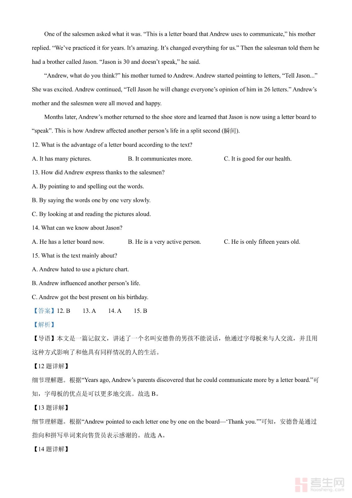 2024年湖北省中考英语真题原版及解析版(含听力文件)