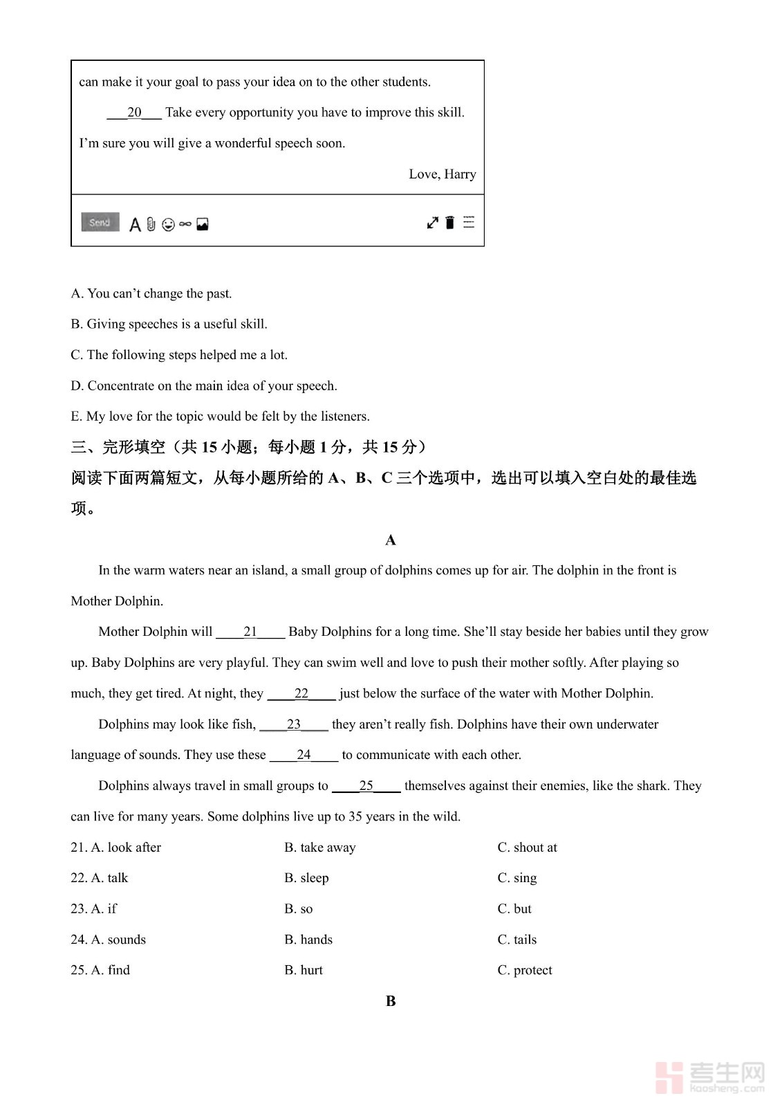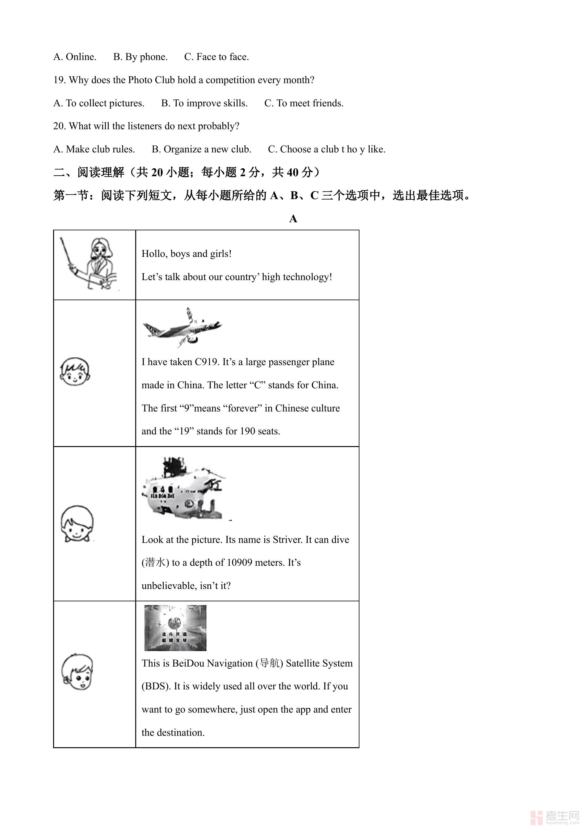2024年内蒙古赤峰市中考英语真题(原卷版)