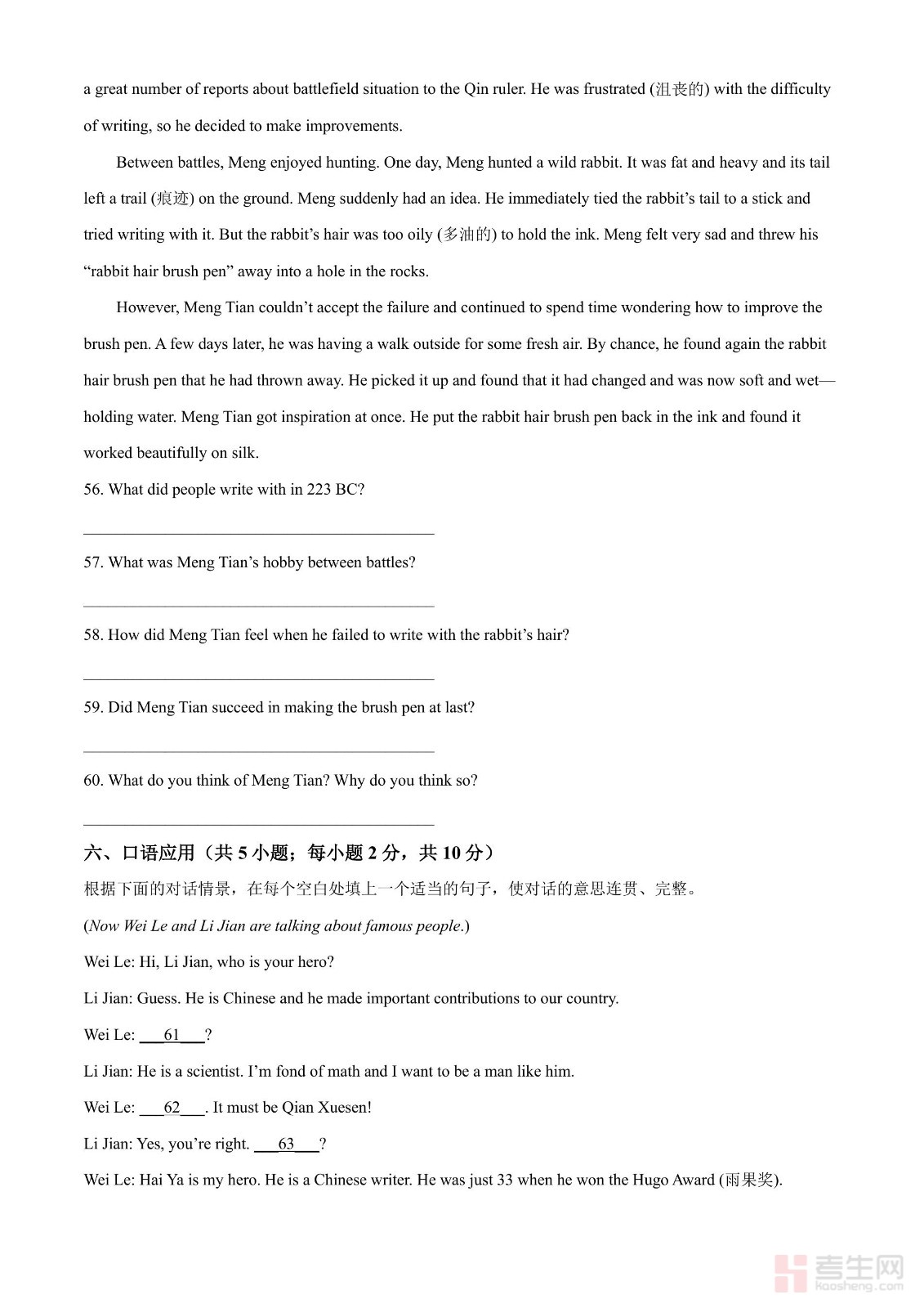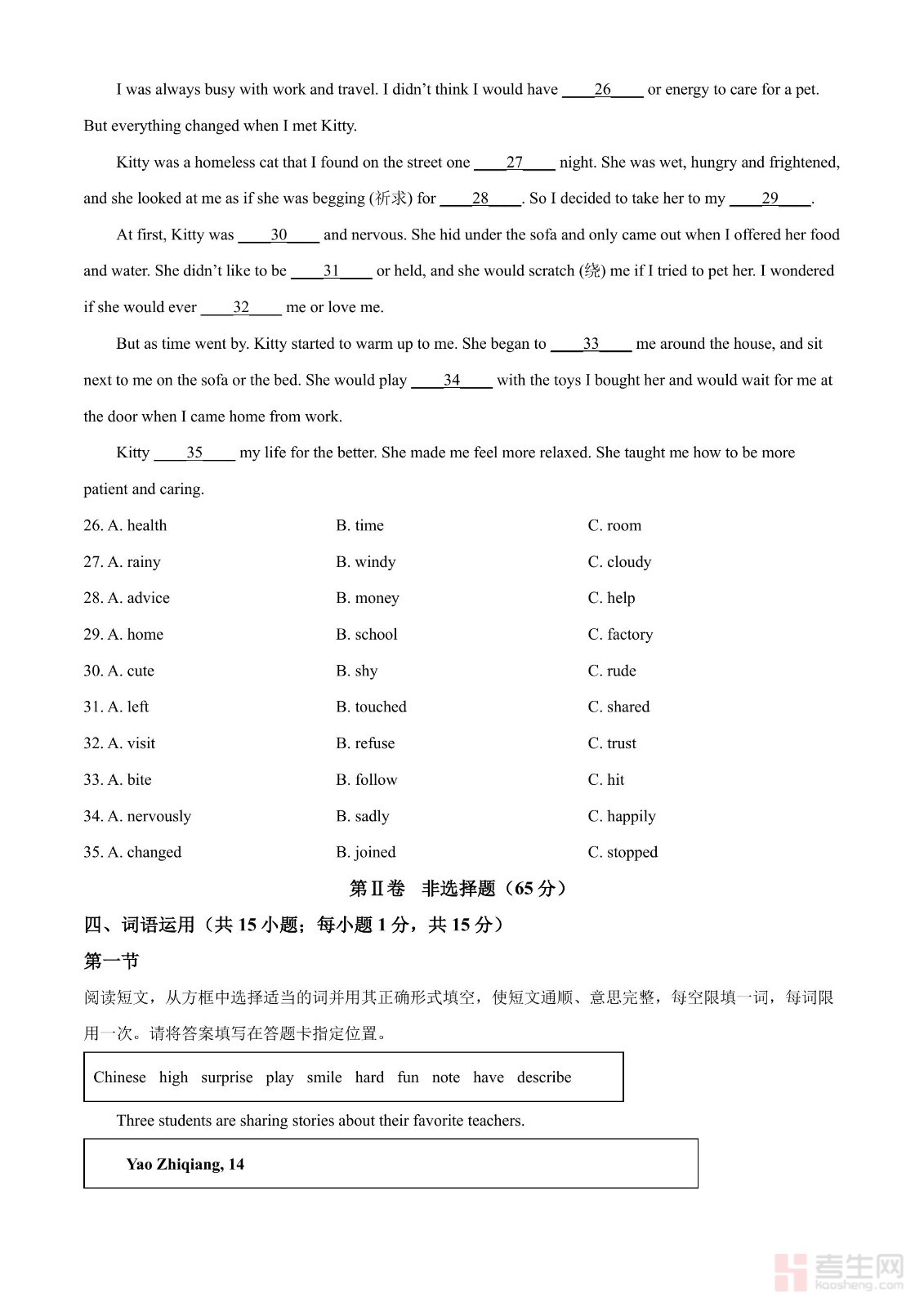 2024年湖北省中考英语真题原版及解析版(含听力文件)