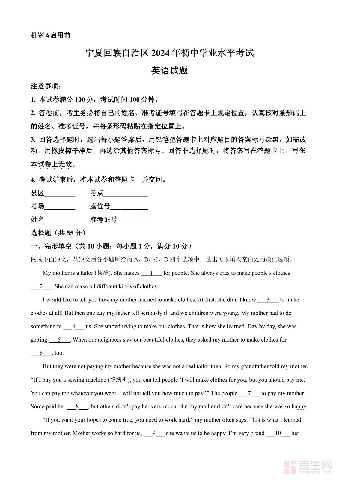 2024年宁夏中考英语真题(解析版)