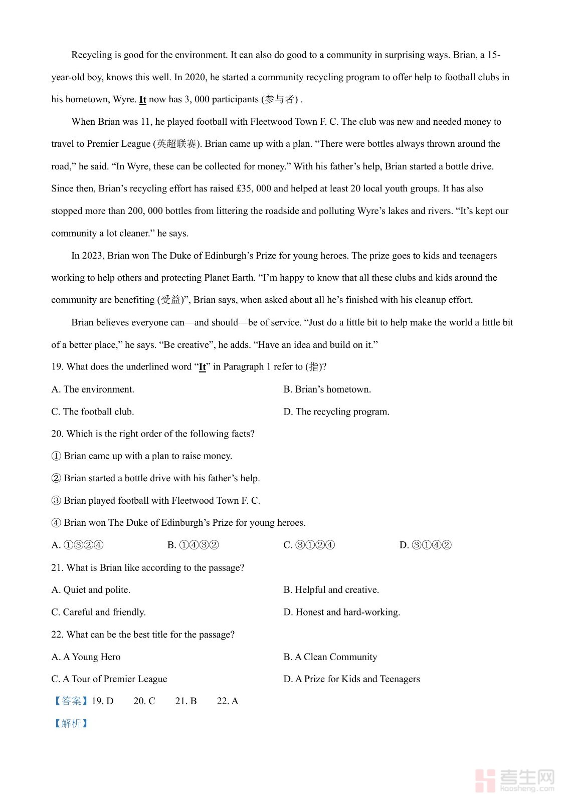 2024年湖北省中考英语真题原版及解析版(含听力文件)