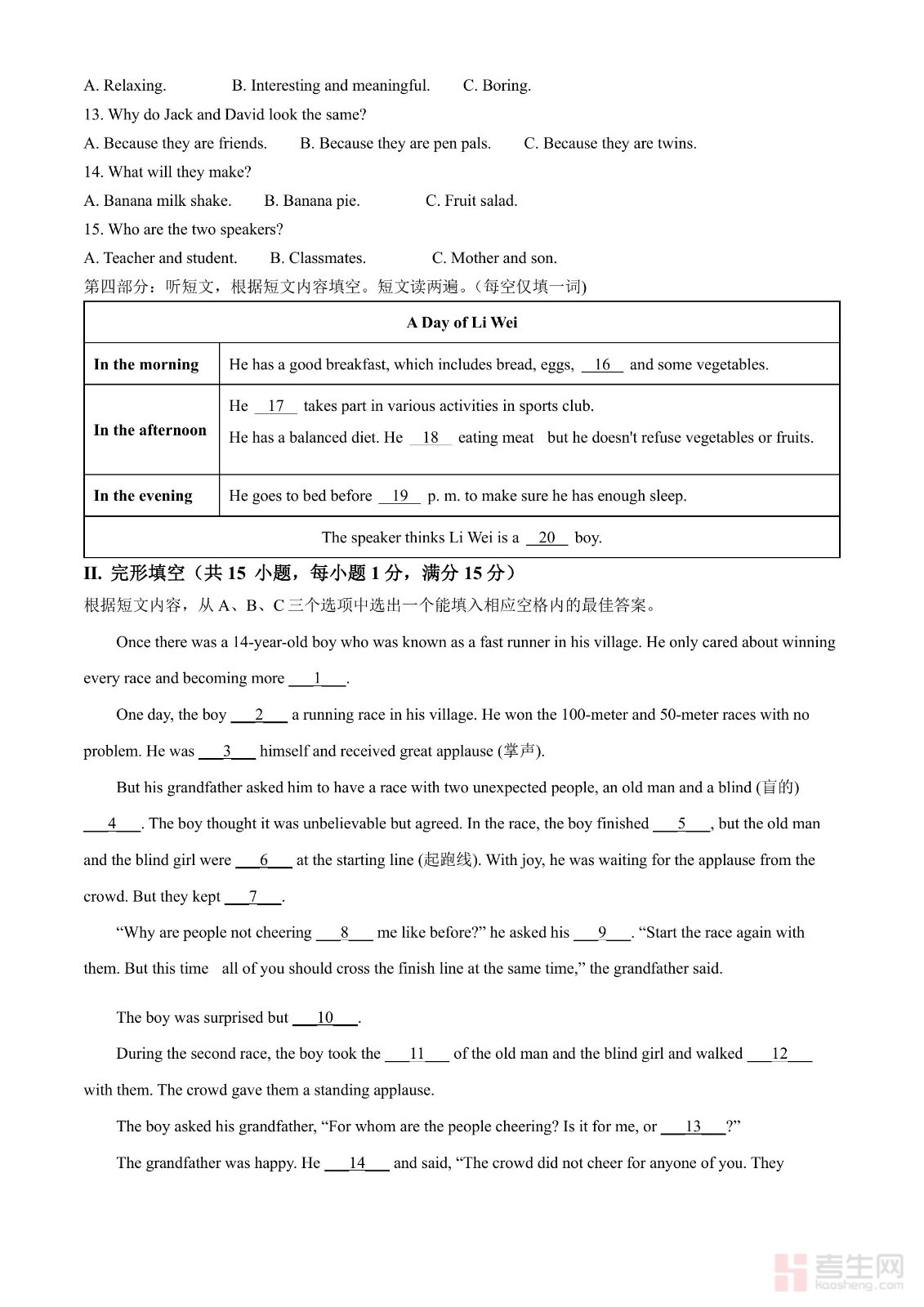 2024年湖北省中考英语真题原版及解析版(含听力文件)