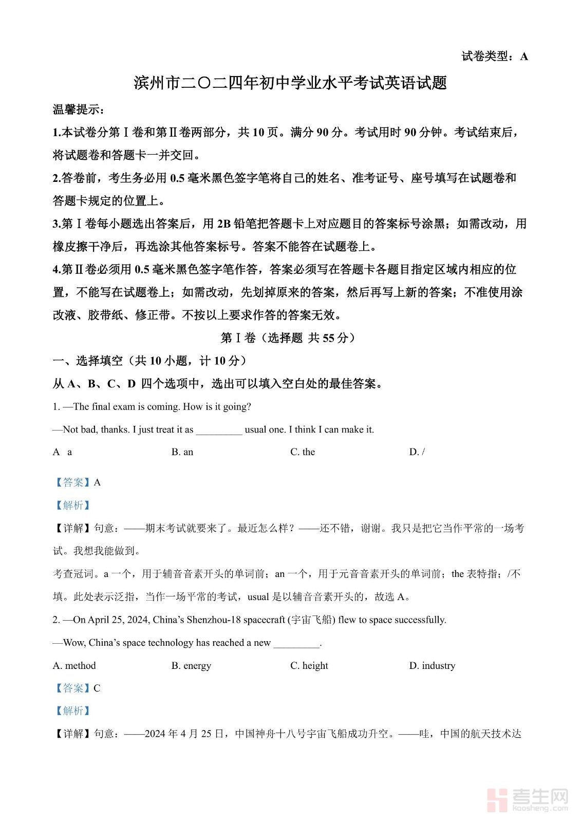 2024年湖北省中考英语真题原版及解析版(含听力文件)